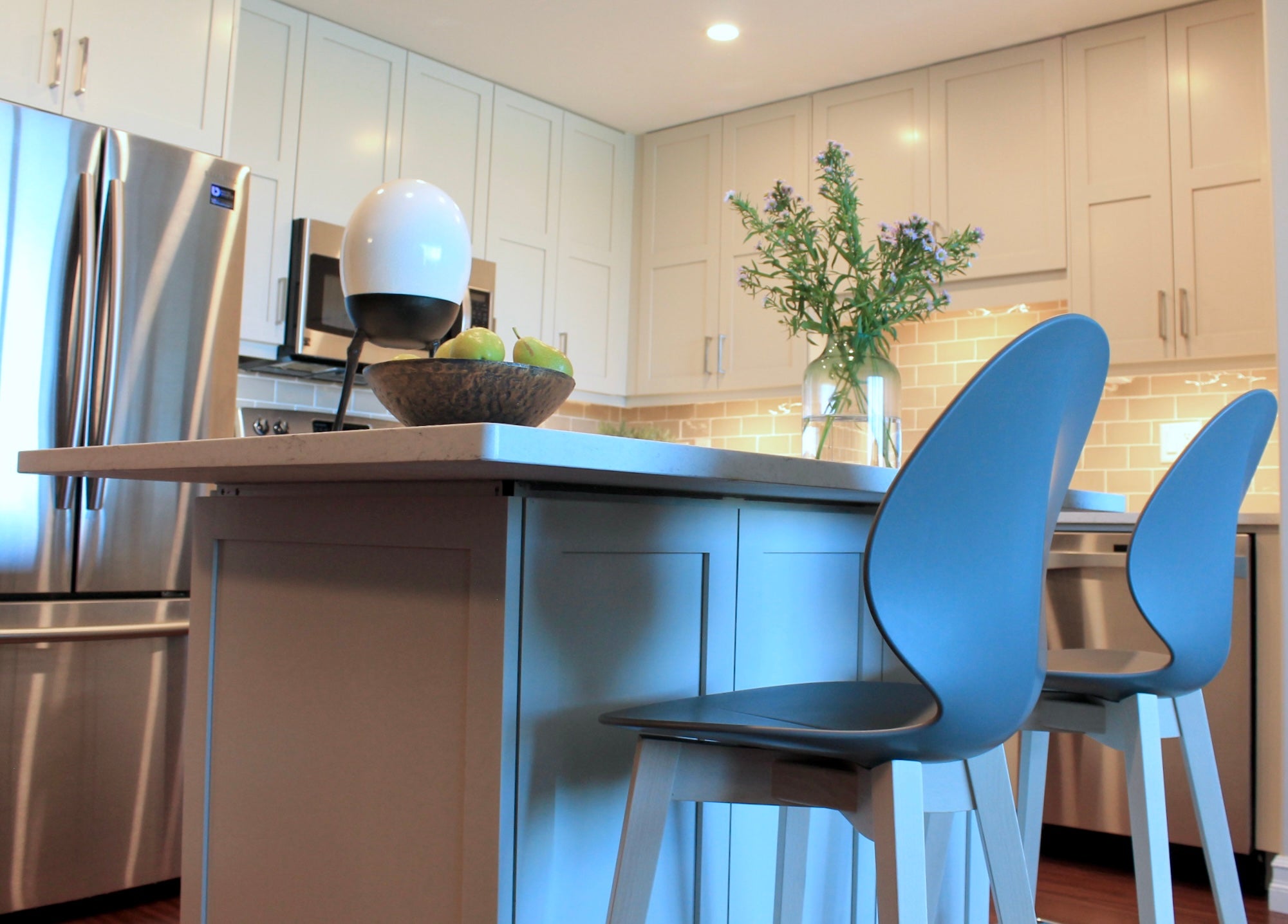 This kitchen update was designed for an elderly client who wanted to transform her dark, dated builder kitchen into a bright and cheerful space. Working within a limited budget, the existing cabinets were retained, but the upper doors were replaced and extended to the ceiling for a more refined look. Some of the original doors were repurposed on the island to add character and cohesion. The mahogany finish was refreshed with a soft, warm neutral tone, complemented by a mushroom-toned vintage tile backsplash and new hardware. Additional lighting and improved functionalityβincluding pullout drawers and a blind-corner pulloutβmade the kitchen both more usable and enjoyable for the client.