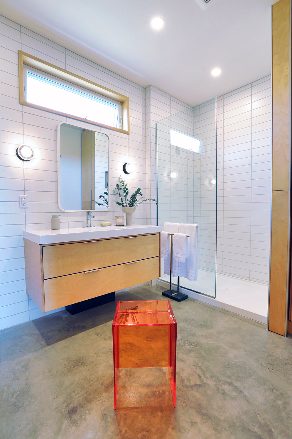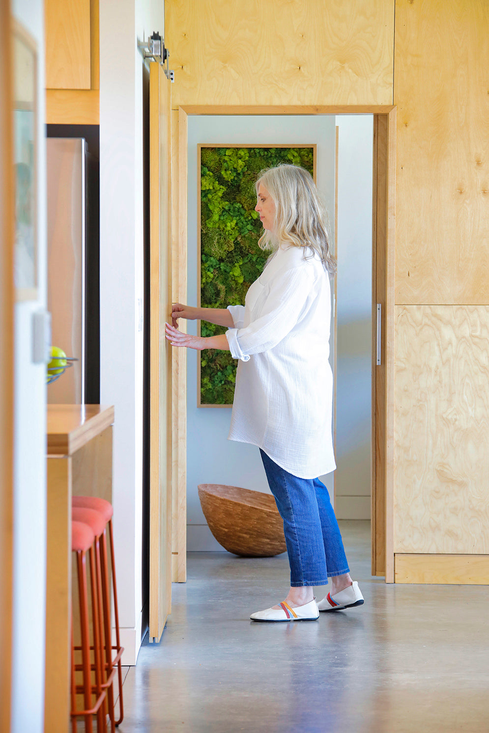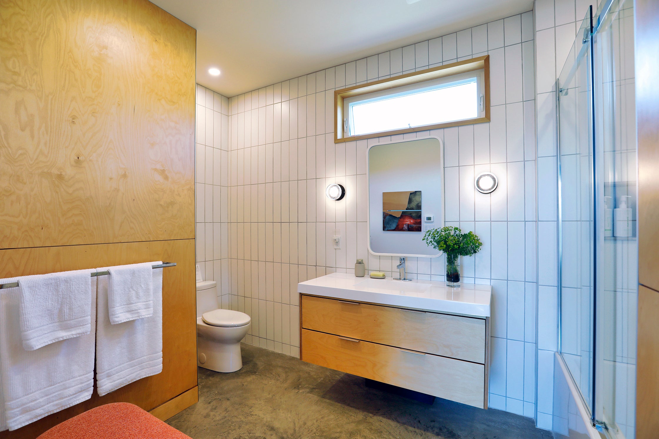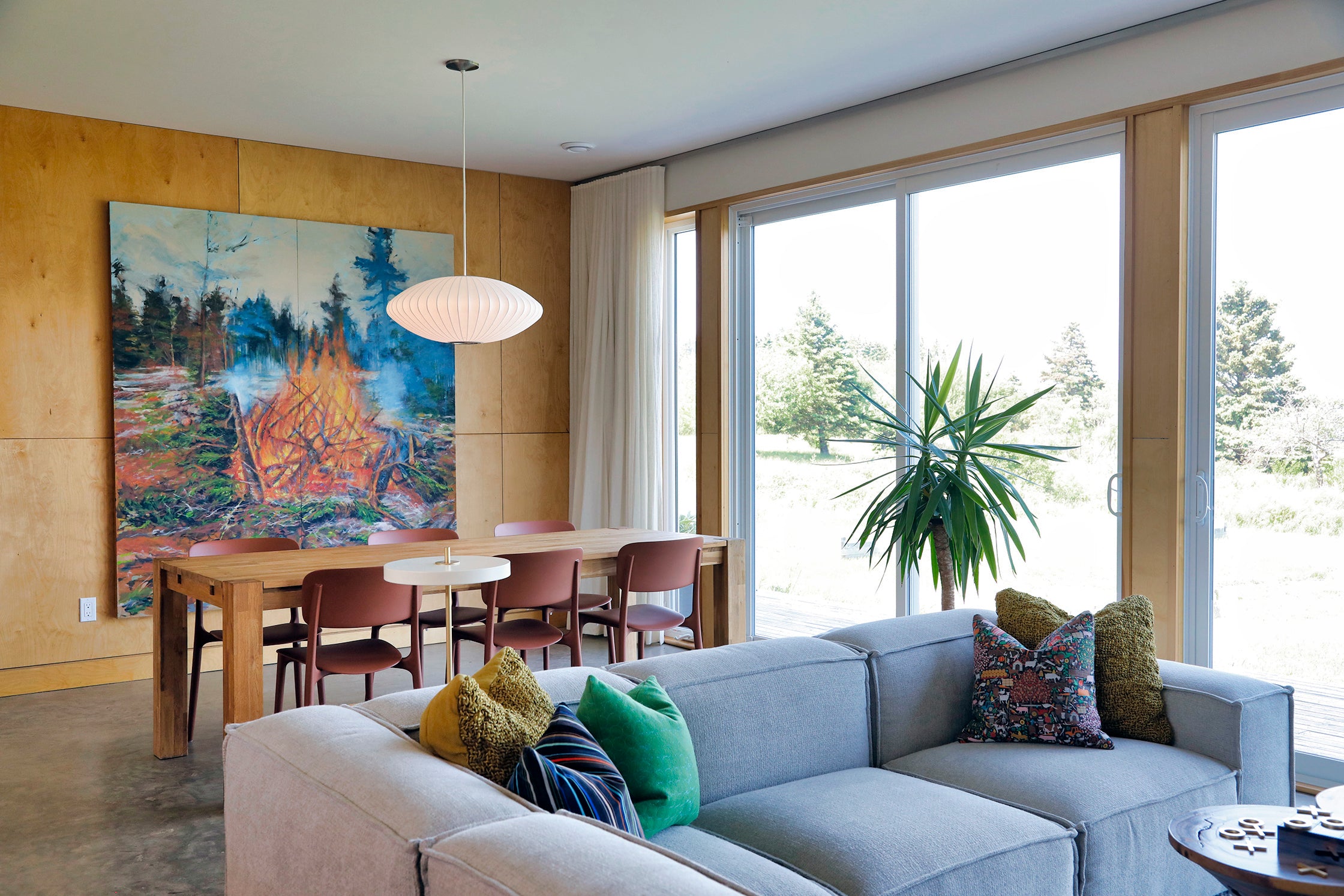 Interior finishes reflect this ethos through a restrained palette—warm wood, soft white, and concrete—creating a serene and contemporary atmosphere that complements the natural setting.