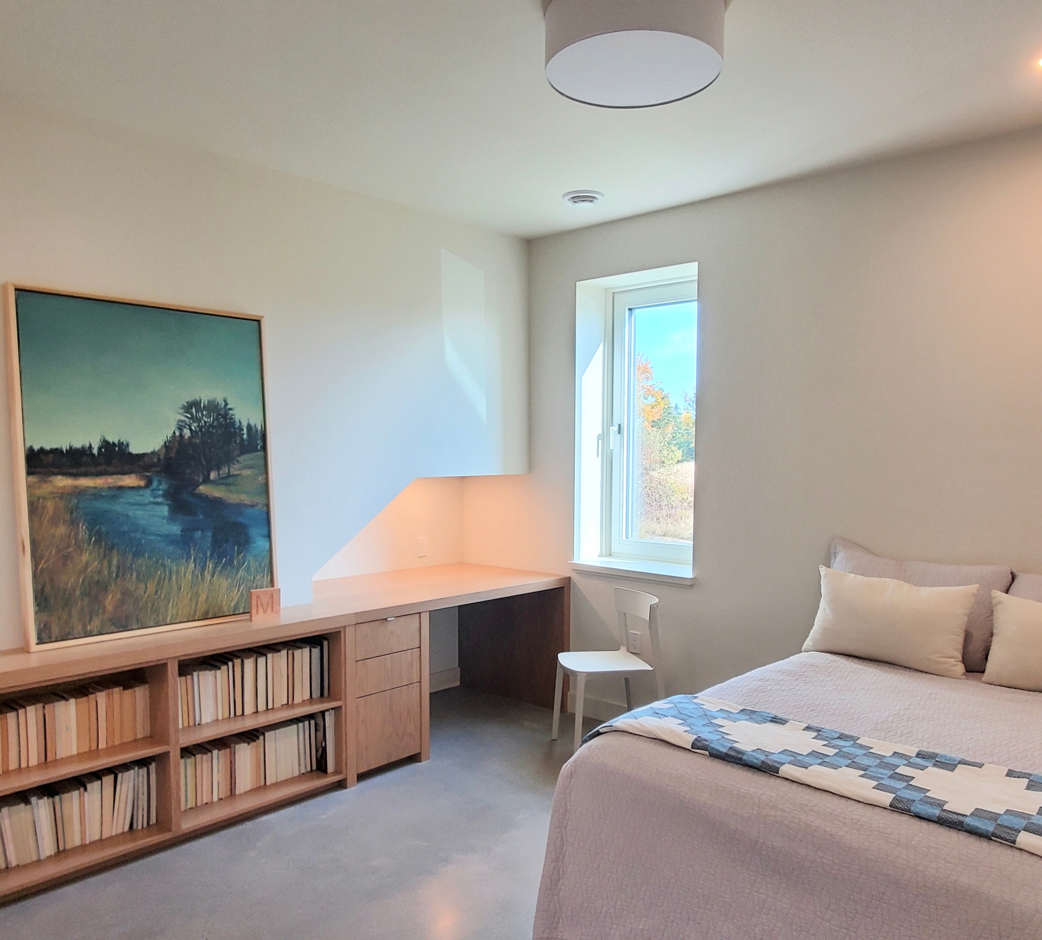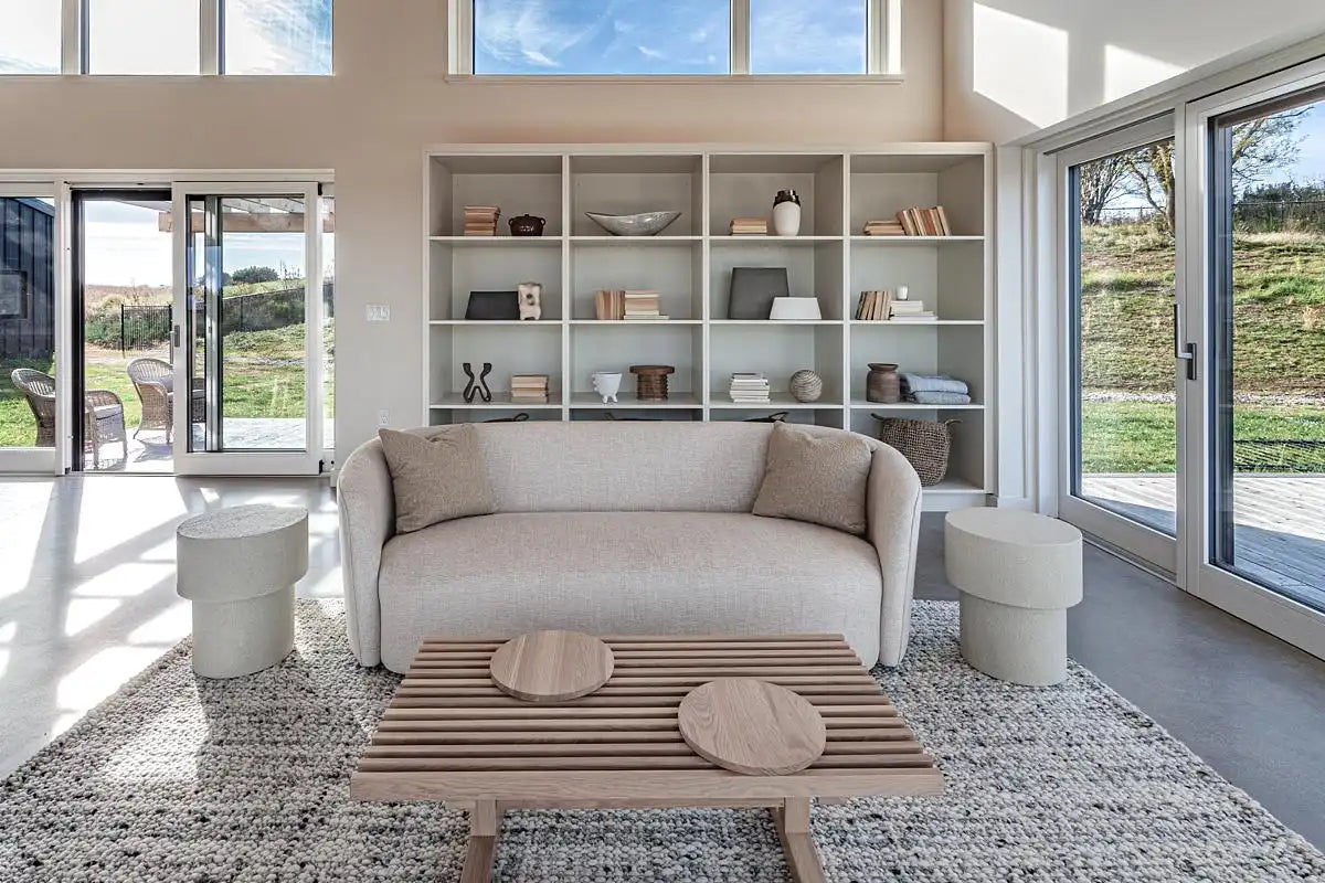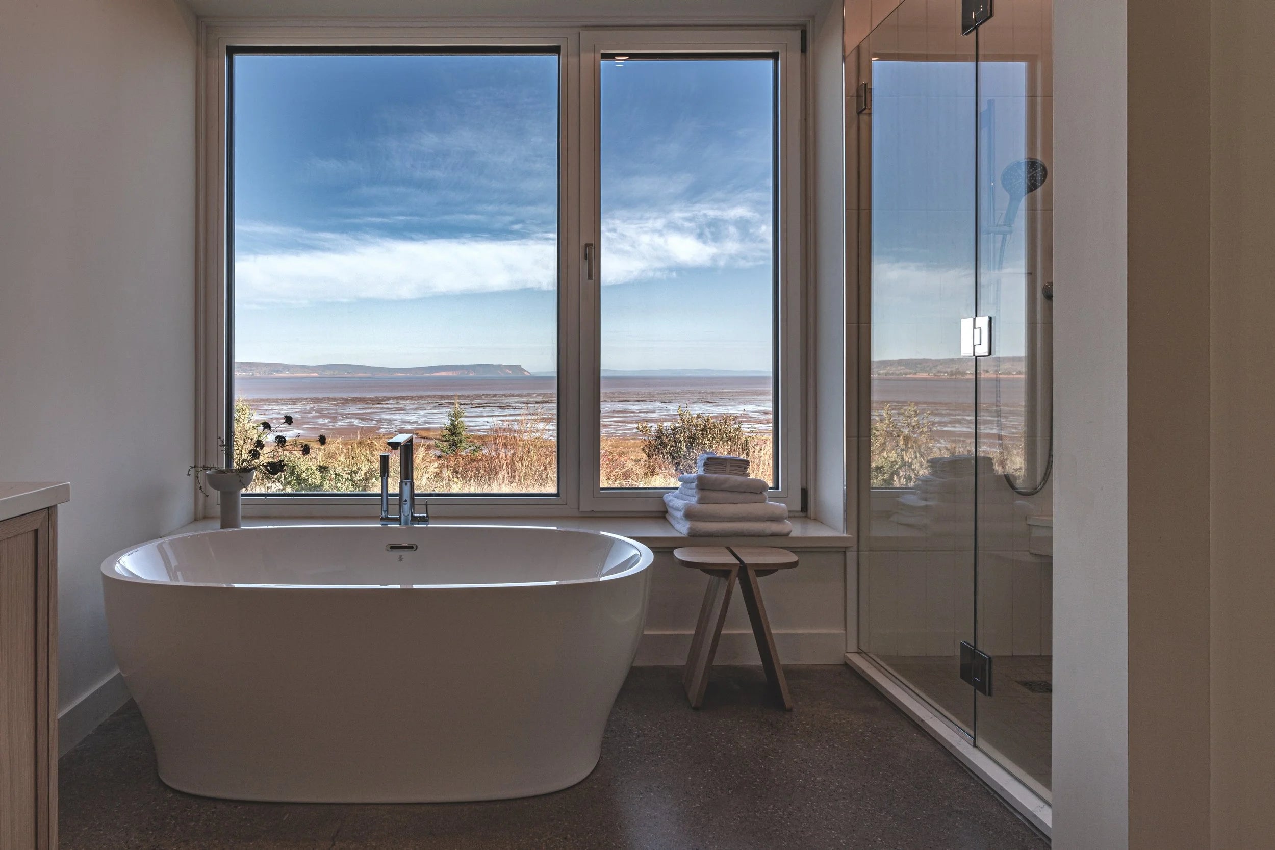 Perched along Nova Scotia’s Minas Basin, Shorebird is more than a beach house—it’s a retreat that blends seamlessly with its coastal surroundings. Designed to balance comfort, sustainability, and sweeping views, the home invites connection with nature at every turn. In keeping with its serene setting, we styled the interiors with a soft, neutral palette and natural wood elements, creating a calm and timeless atmosphere.