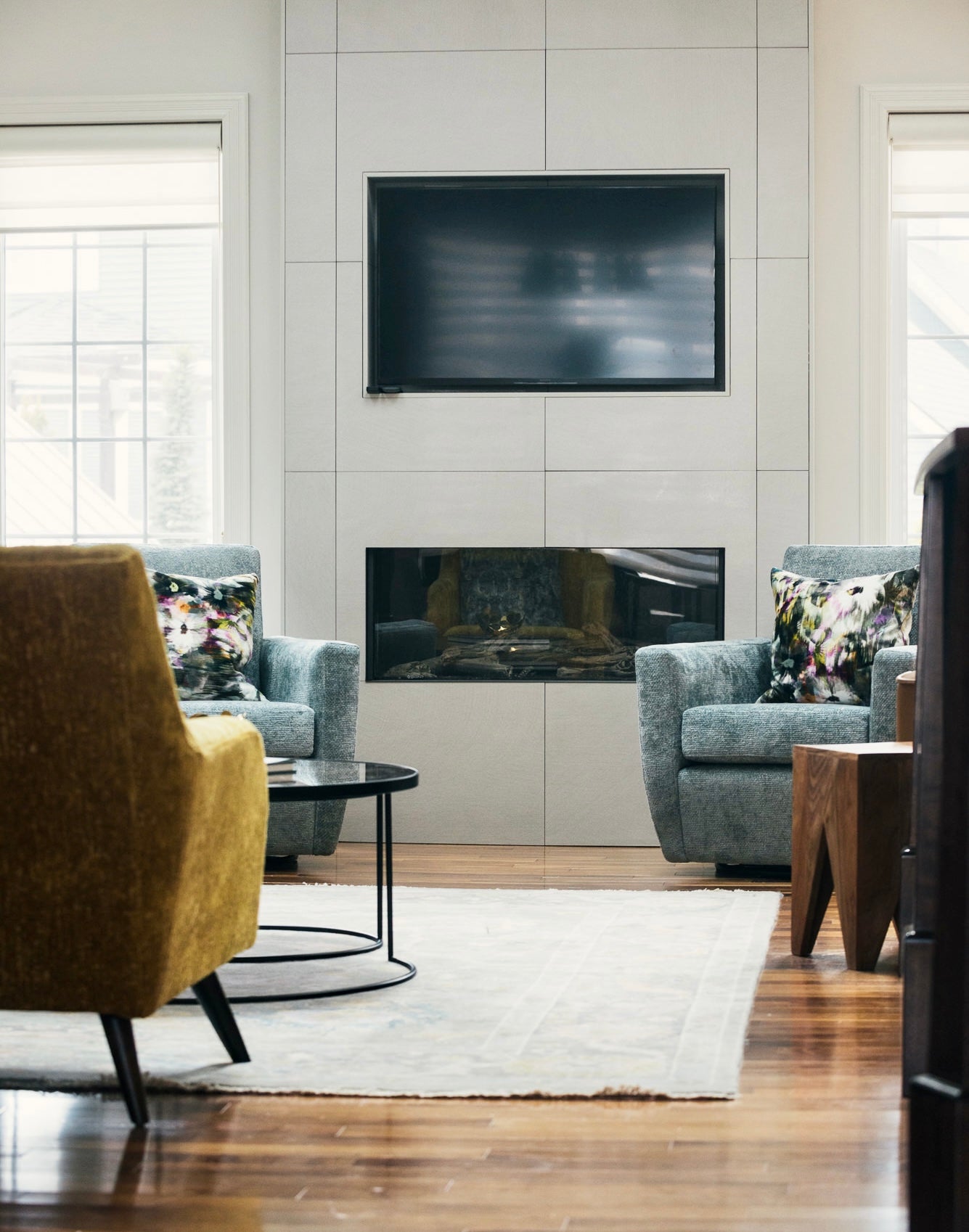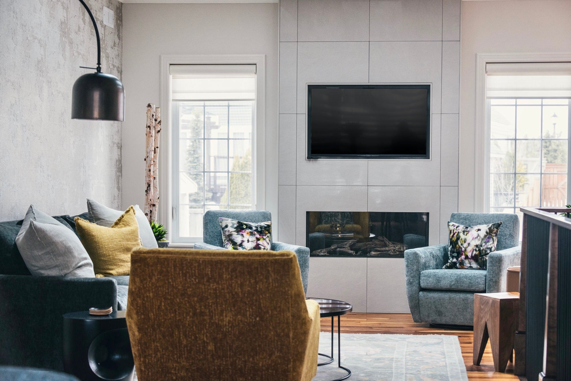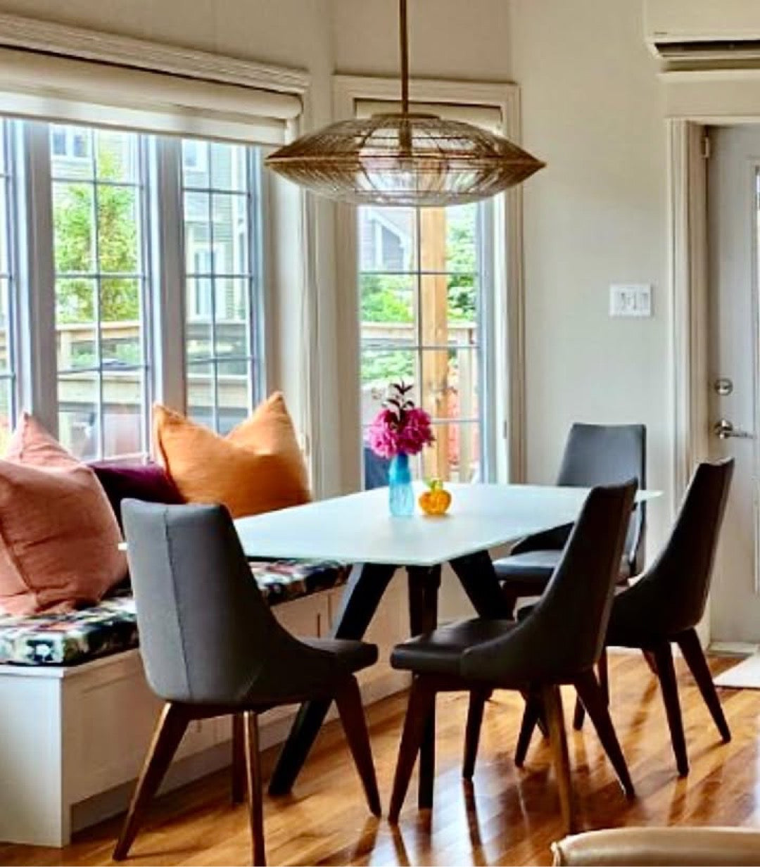 Attica collaborated virtually with clients in St. John’s, Newfoundland, to reimagine their main floor renovation. The design blends traditional and modern elements, warm and cool tones, mixed materials, and luxurious fabrics to create a space that feels layered, comfortable, and inviting.