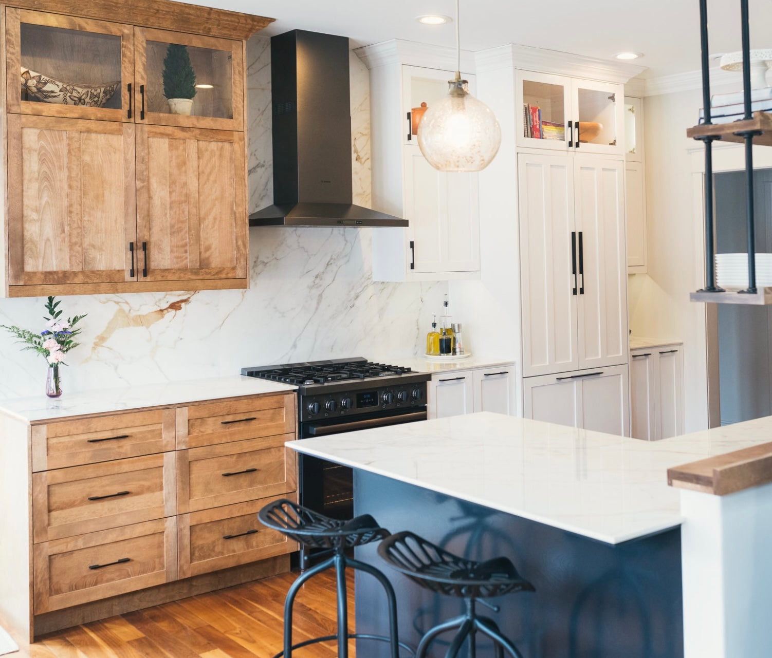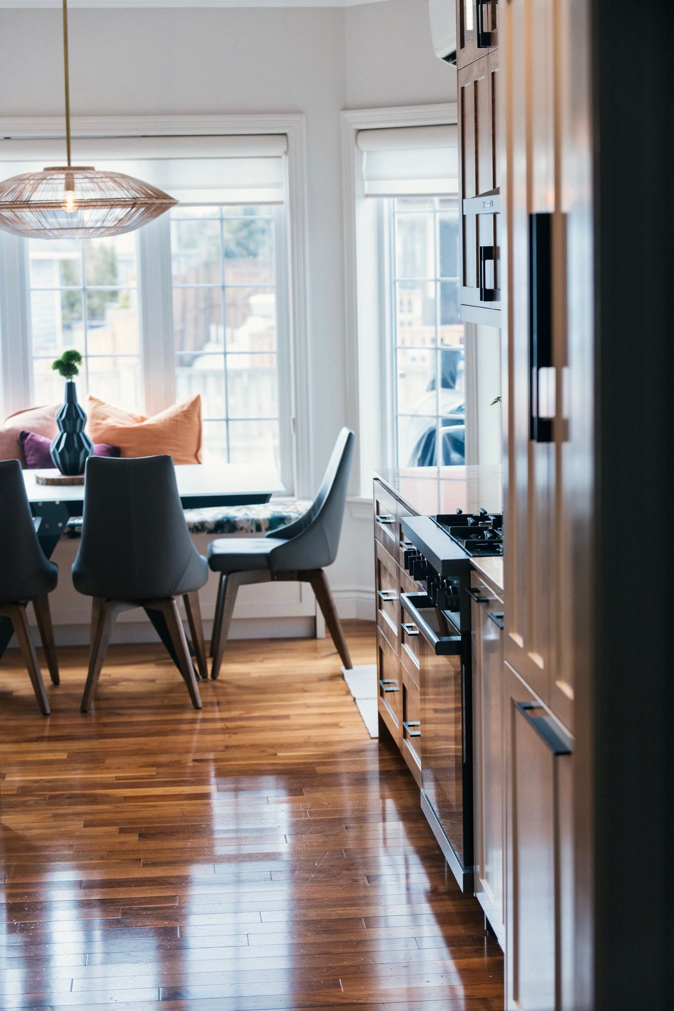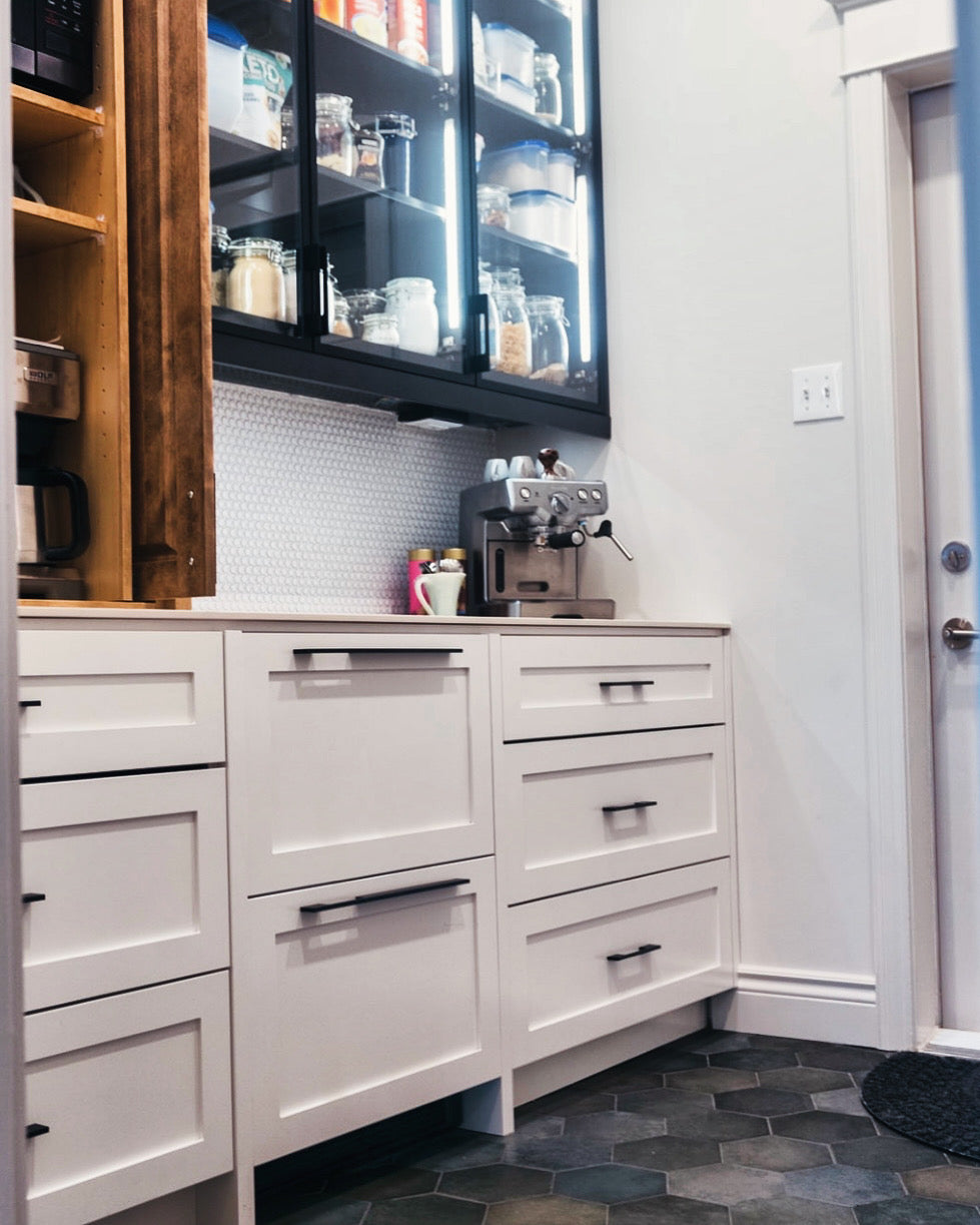 Attica collaborated virtually with clients in St. John’s, Newfoundland, to reimagine their main floor renovation. The design blends traditional and modern elements, warm and cool tones, mixed materials, and luxurious fabrics to create a space that feels layered, comfortable, and inviting.