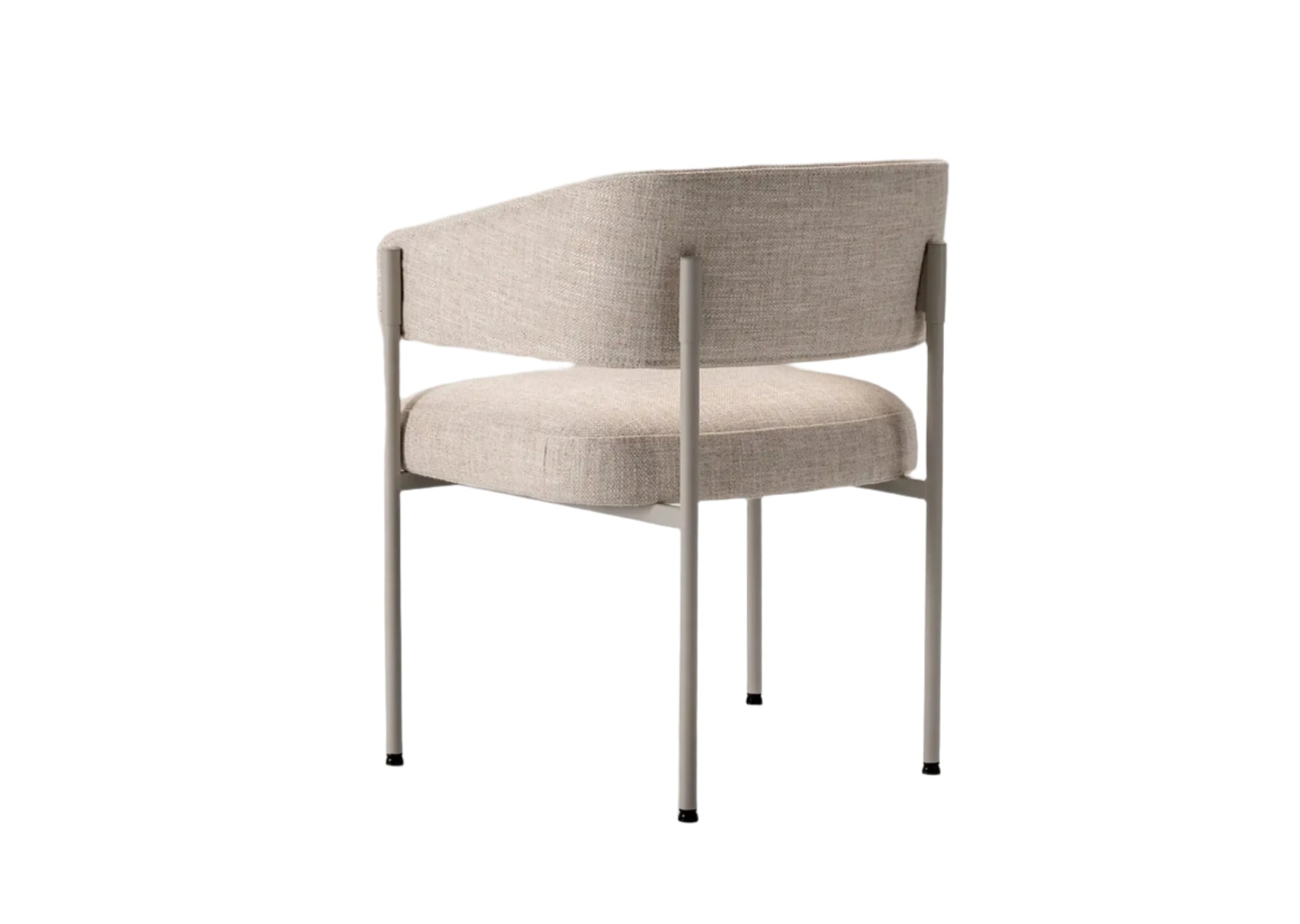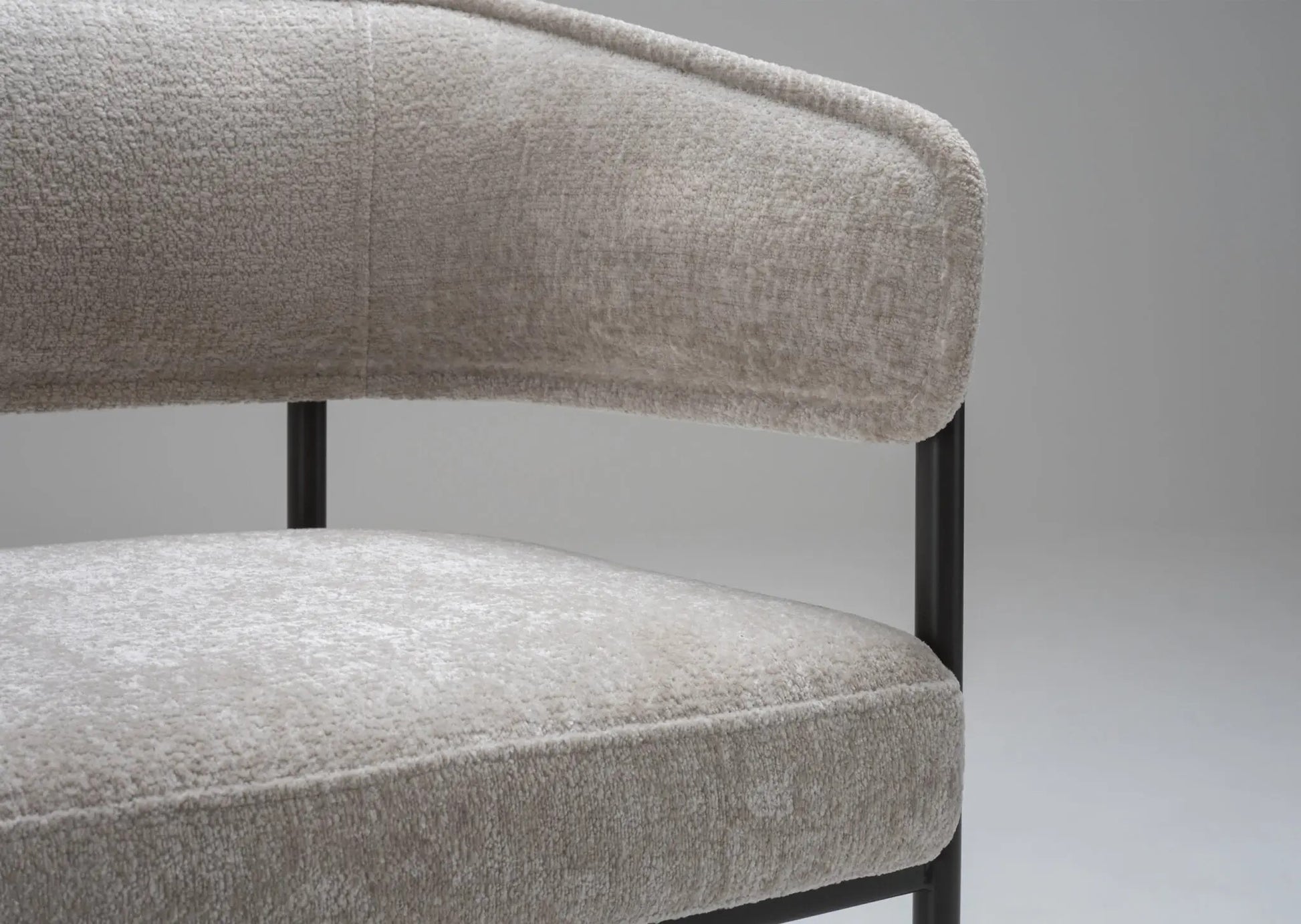 The Alice chair features a modern and contemporary style, characterized by clean lines and a minimalist structure. This enveloping chair stands out with its armrests integrated into the continuation of the backrest. Its fully welded steel frame gives it a robust yet elegant appearance, without compromising on comfort.