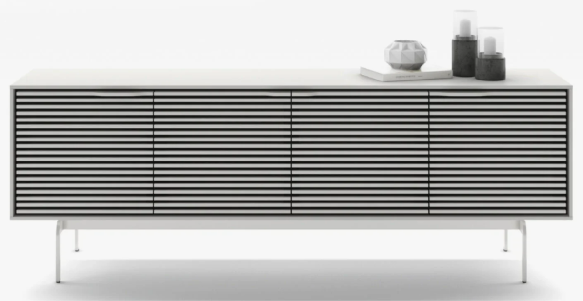Sleek and streamlined, this sexy console collection offers multiple cabinet sizes and base options, providing the versatility to serve as full-featured media cabinets or impressive storage credenzas.