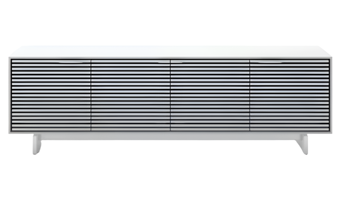 The Align 7479 tall quad cabinet's louvered doors provide concealed storage while allowing sound, air, and remote's signals to pass easily through. Select from a Media base with wheels or taller Console base.
