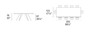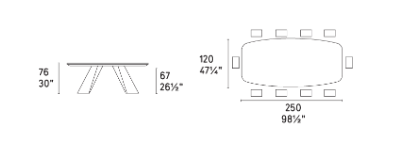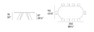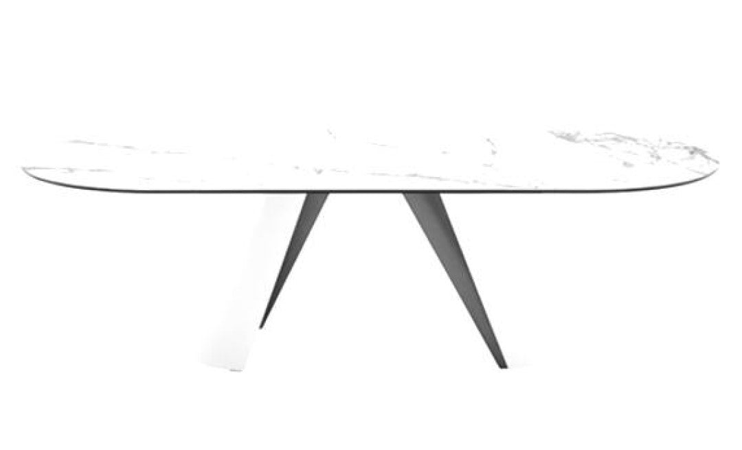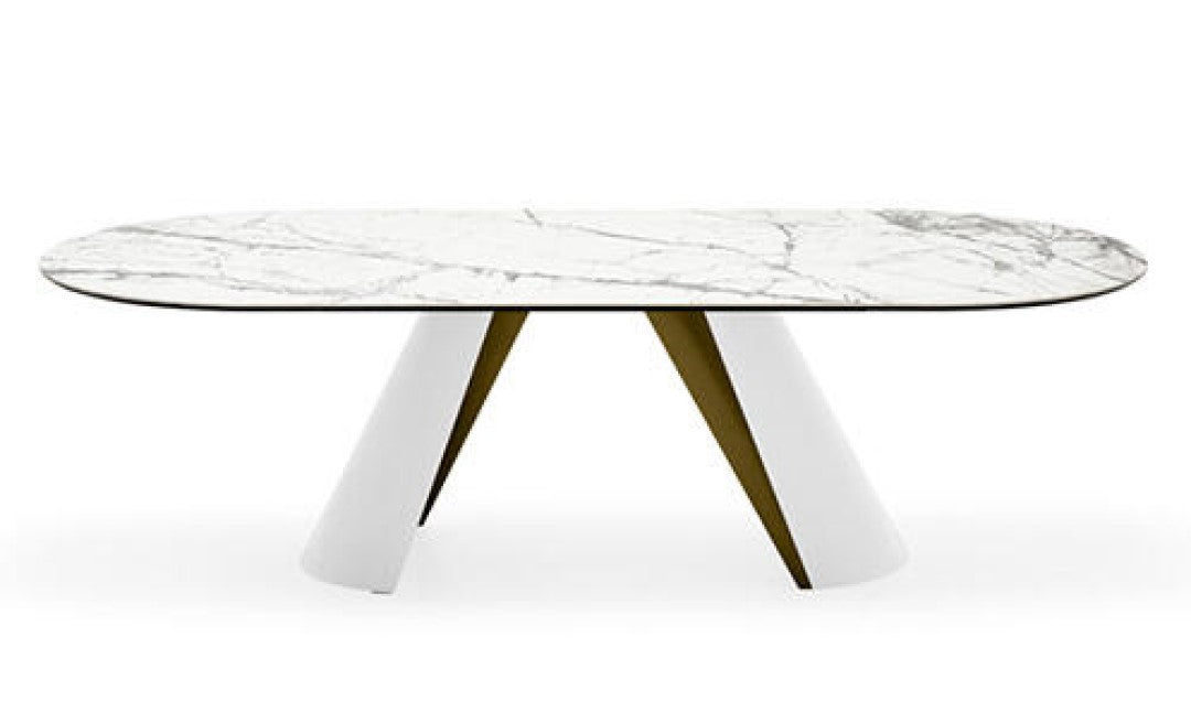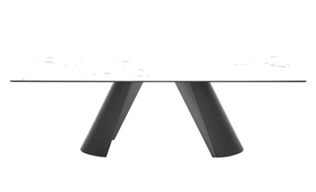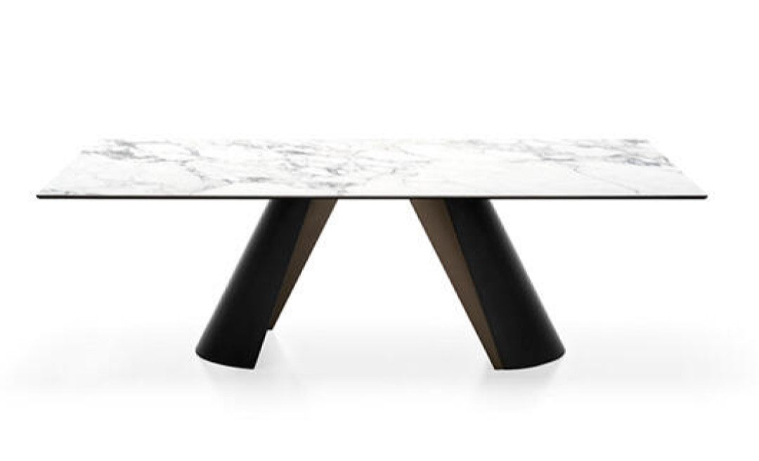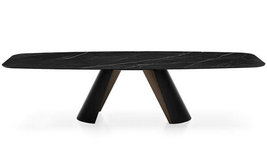 The Apian table embodies a design philosophy that places a strong emphasis on architectural elegance and utilizes meticulously crafted materials. Its design exudes a sense of airiness, taking inspiration from the semi-cylindrical shape of the sheet metal that gently slopes upwards, resulting in a sharply defined base upon which the non-extending top is placed.