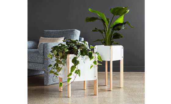 Inspired by Bauhaus design principles, the Atrium Planter lets you nurture your green thumb at home or the office. Form follows function with straightforward shapes that let your plants do the talking. The industrial design of the planter is contrasted by warm wood legs that provide plenty of support. Available in two heights, it easily melds into modern surroundings. High or low, how does your garden grow?