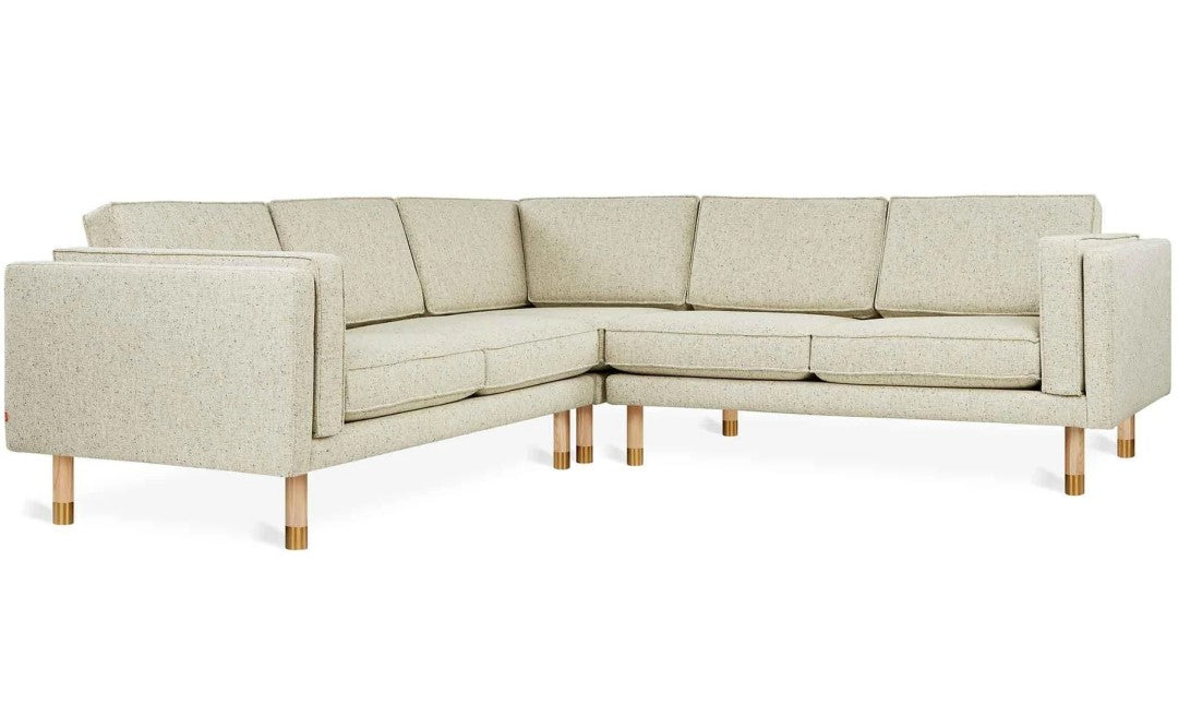 The Augusta is a meticulously designed corner sectional that nods to classic Modernist archetypes while looking to the next Mid-century with fresh details, finishes and sustainable materials. Structured cushions, with French-seam detailing, provide comfort and reinforce the pedigreed style. Solid wood legs include a metal detail to add understated sophistication to the design. Augusta’s frame and legs are constructed with durable, kiln-dried FSC®-Certified hardwood, in support of responsible forest management. The Bi-Sectional matches perfectly with the Augusta Sofa.