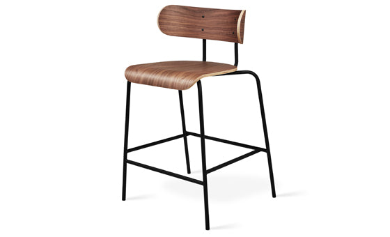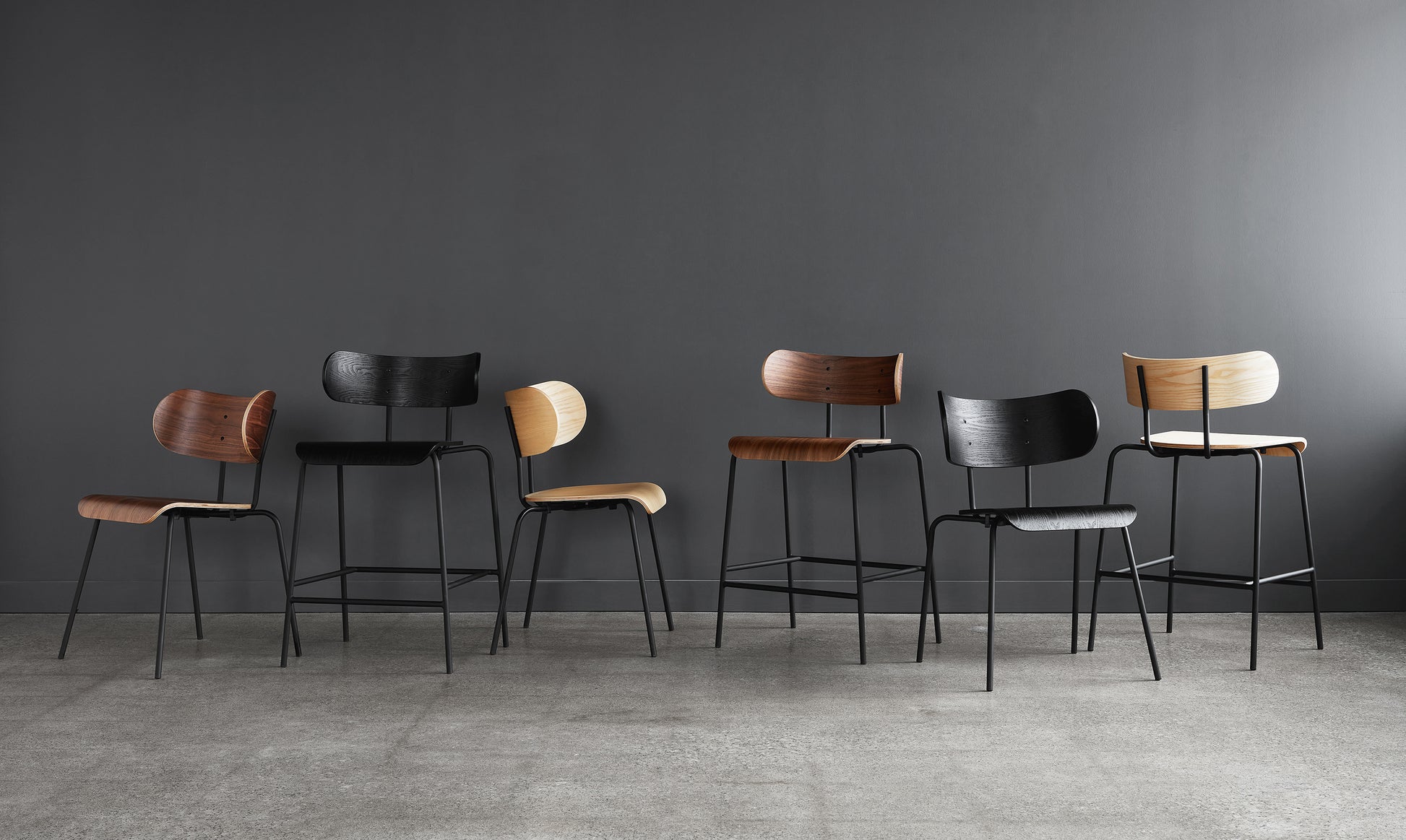 Blending a mid-century design approach with the ease of contemporary living, the Bantam Counter Stool embodies simple sophistication with a sculptural ethos that welcomes you to sit and stay awhile. Delicate steel legs support a formed-plywood seat and back that ergonomically support the body with gentle curves for all-day comfort. Sturdy, yet lightweight, this original design includes an integrated footrest for extra support. All you have to do is sit back and appreciate the craftsmanship and versatility of this modern marvel. An instant classic, Bantam is available in Blonde Ash, Black Ash and Walnut.