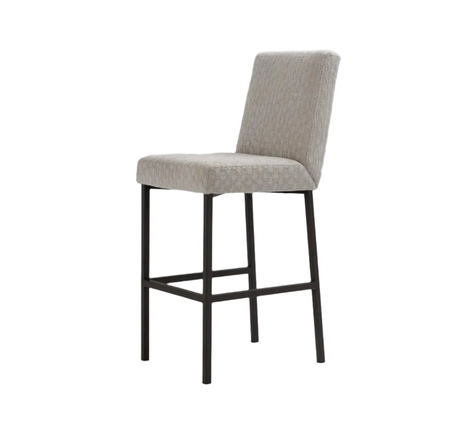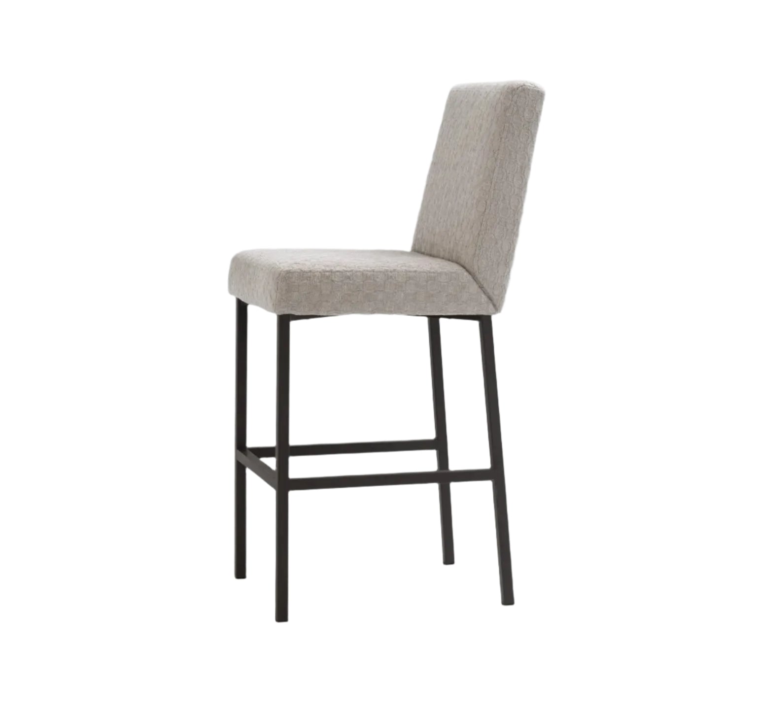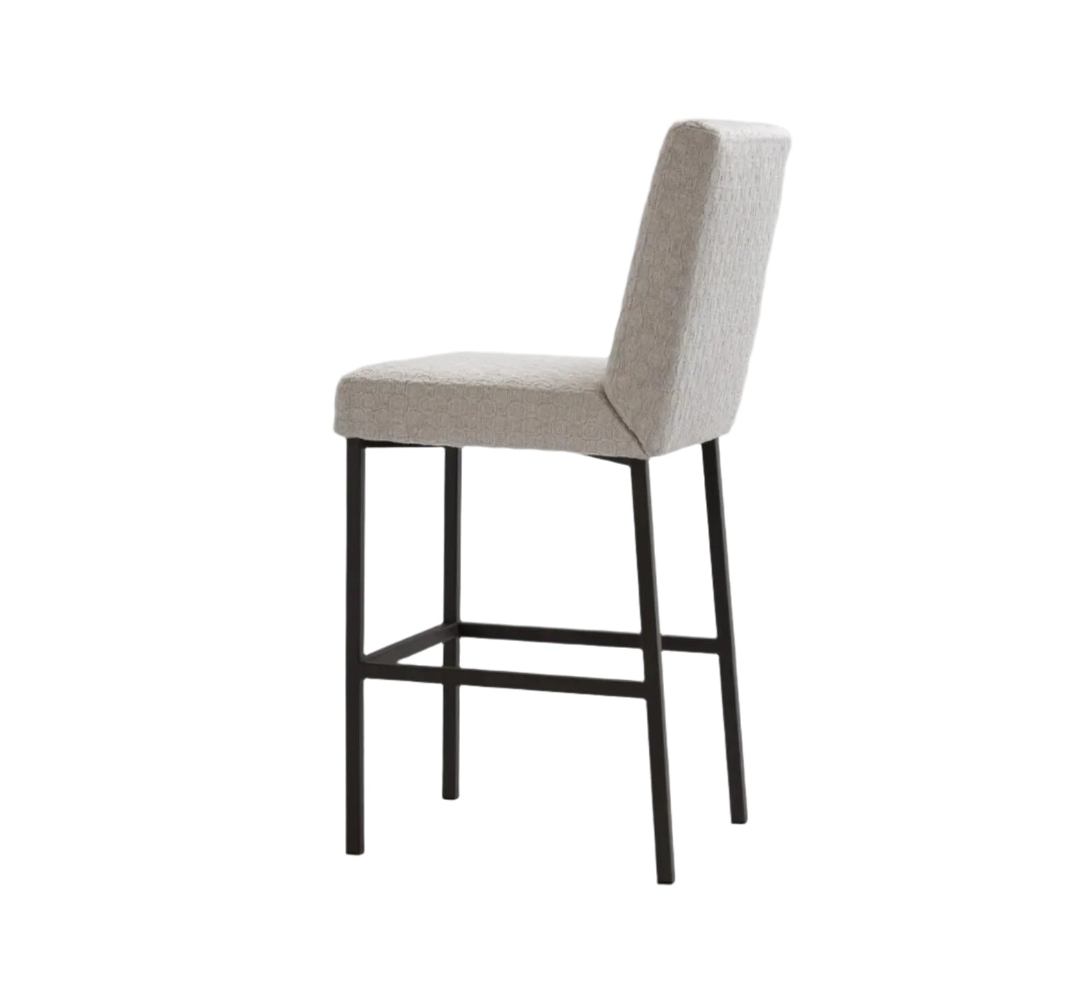 The Beth stool is characterized by its sleek and contemporary look. Its rectangular seat and slightly inclined backrest provide a sense of warmth and comfort. The metal frame, with its straight lines and square legs, offers stability, blending functionality with modern aesthetics.