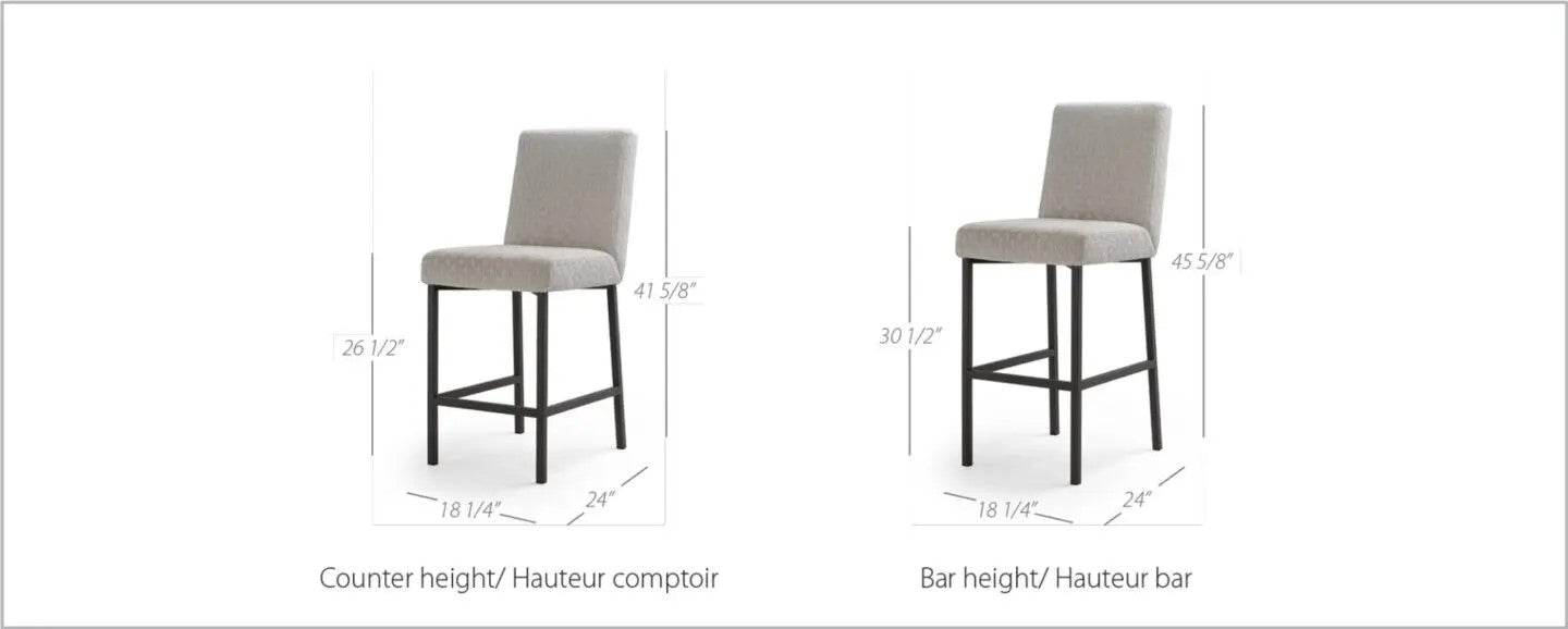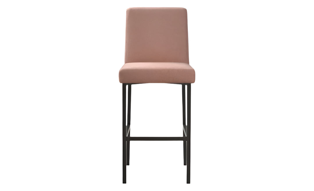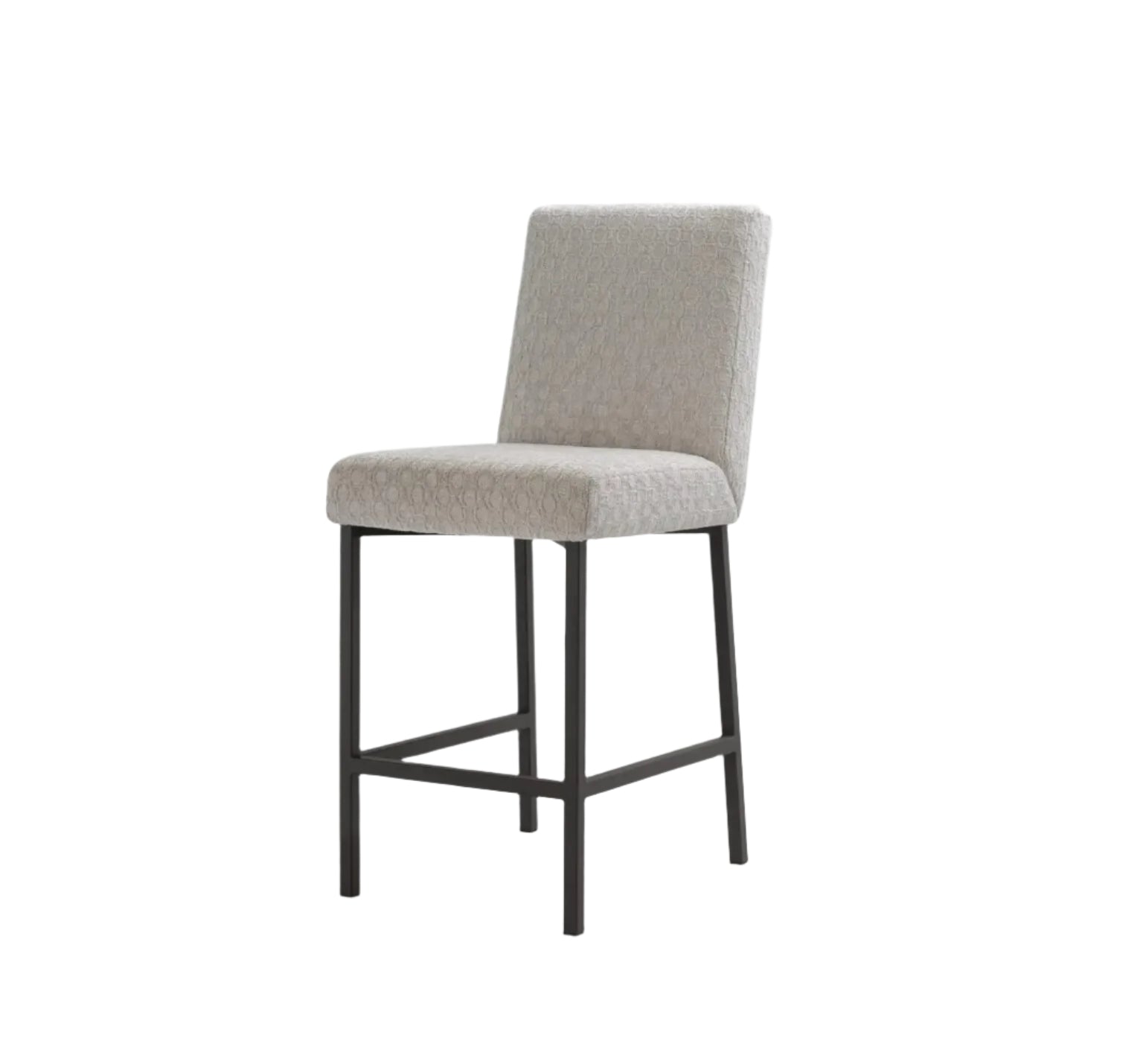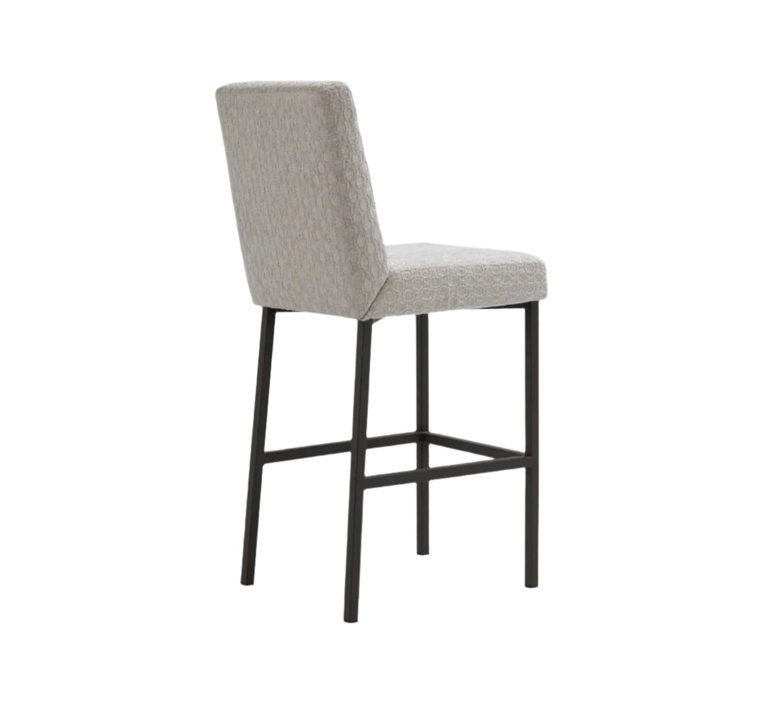 The Beth stool is characterized by its sleek and contemporary look. Its rectangular seat and slightly inclined backrest provide a sense of warmth and comfort. The metal frame, with its straight lines and square legs, offers stability, blending functionality with modern aesthetics.