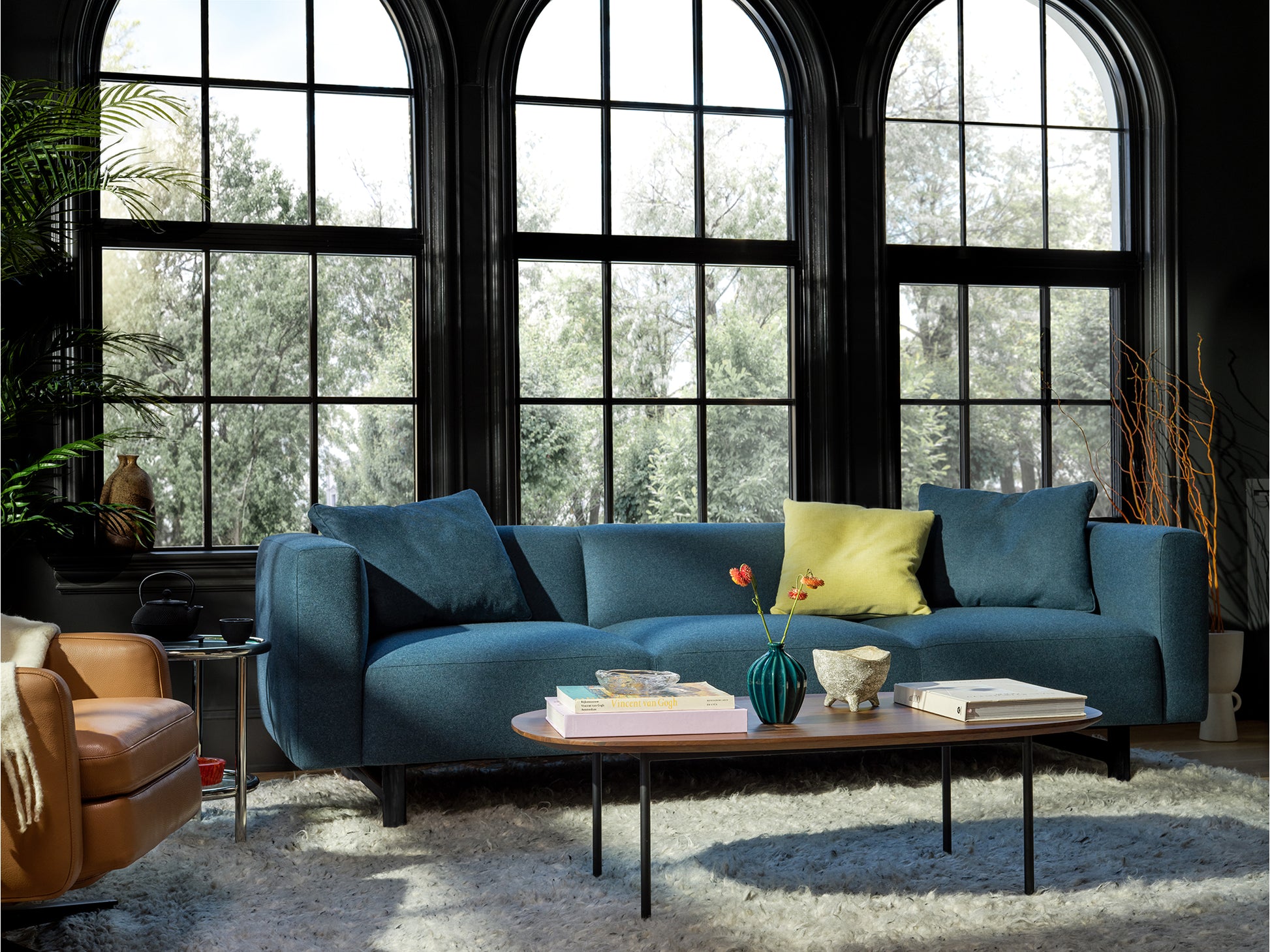 With a tufted crown that creates the illusion of distinct cushions, Bonne marries rectilinear lines with organic curves.