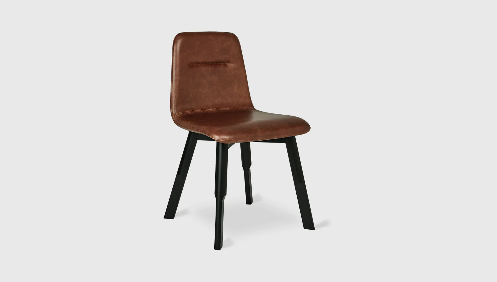 The Bracket Dining Chair brings a uniquely modern elegance to the dining room. The bold sculpting of the solid-wood legs provides the perfect balance to the luxurious leather upholstery of the one-piece seat and back. The leather channel-stitched detail completes the look and adds a touch of personality to this distinctive design. Matches perfectly with the Bracket Dining Table.