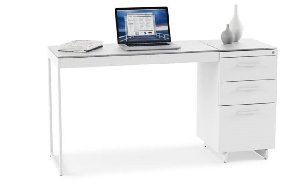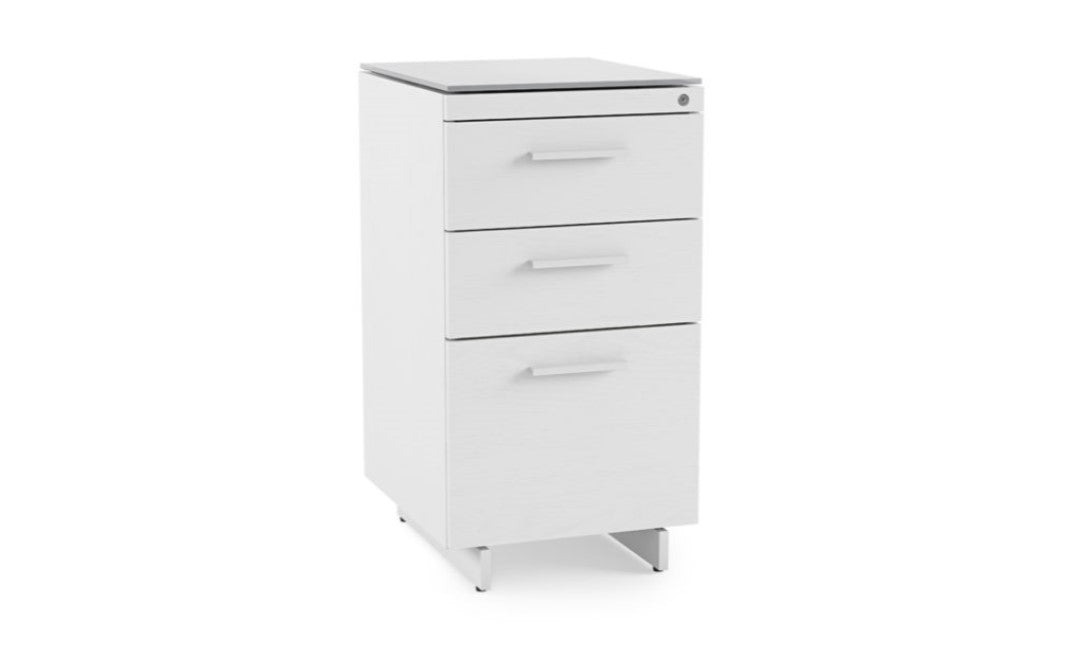 This cabinet extends the workspace while providing secure storage in locking supply and file drawers. Attach the Return 6402 to create a compact workstation.