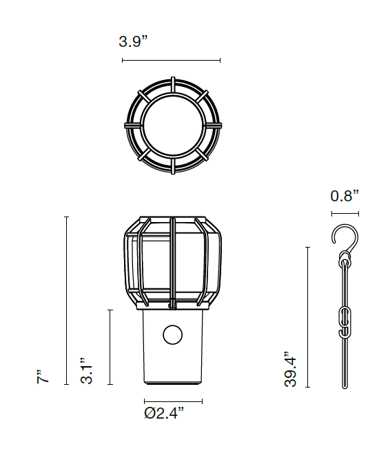 - Included: Micro-USB-C type charging cable, black cord, hook and metal piece that allows to hang the lamp