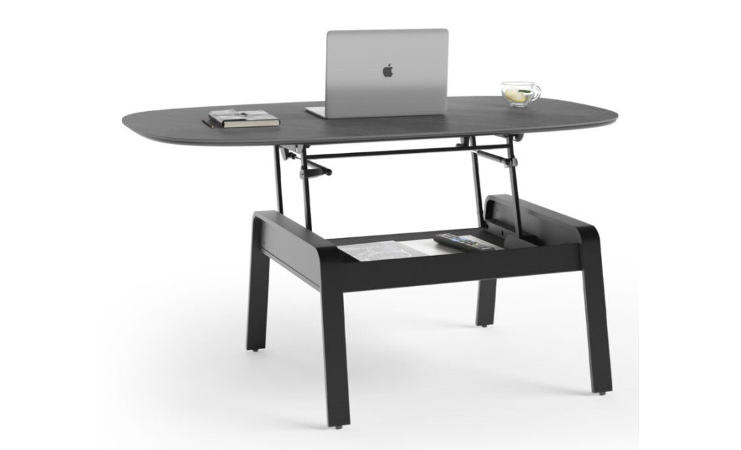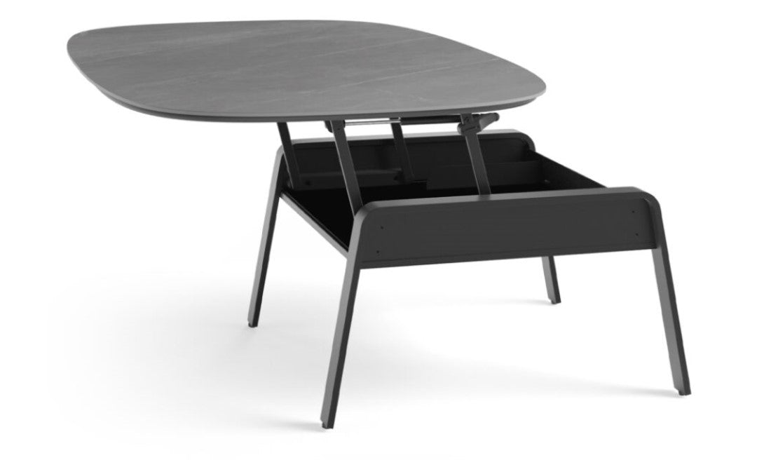 Smoothly gliding from its lowered position to the perfect height for work or play, the Cloud 9 table features a durable porcelain top that conceals a lined lower storage compartment. Partner with the Cloud 9 end and console tables.