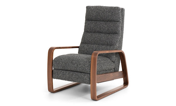Wooden arms are formed into soft geometric shapes, making this recliner chair appear as though it is sliding across the terrain. Experience the invisible mechanism while you recline into its down-filled channel-tufted back and seat cushions. Enjoy the ultimate ride into your comfort zone.
