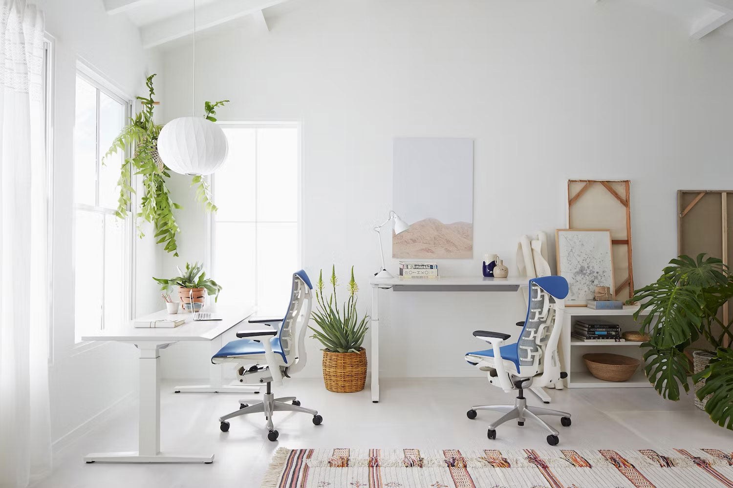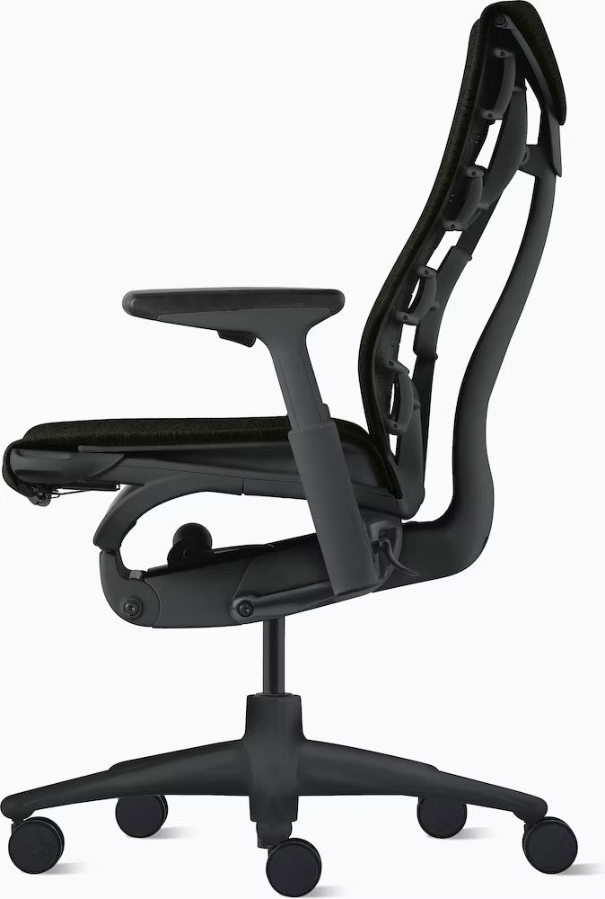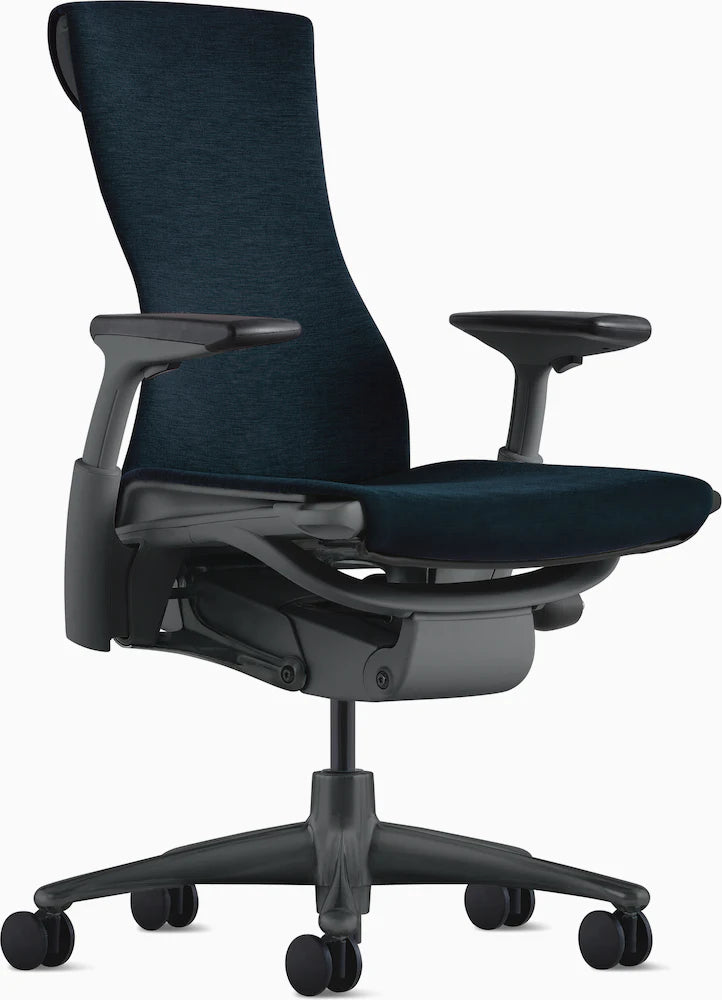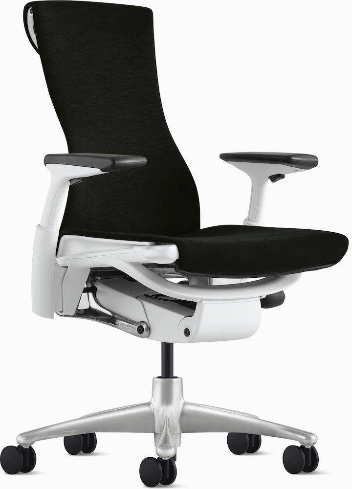 The Embody work chair is the modern benchmark for pressure distribution, natural alignment, and healthy movement. Instead of locking you into the seat, this modern ergonomic office chair combines active and passive ergonomics to encourage effortless long-term sitting. Its signature spinal design lets you manually fine-tune the fit to your back while the matrix of pixels in the seat and back automatically conform to your micro-movements.
