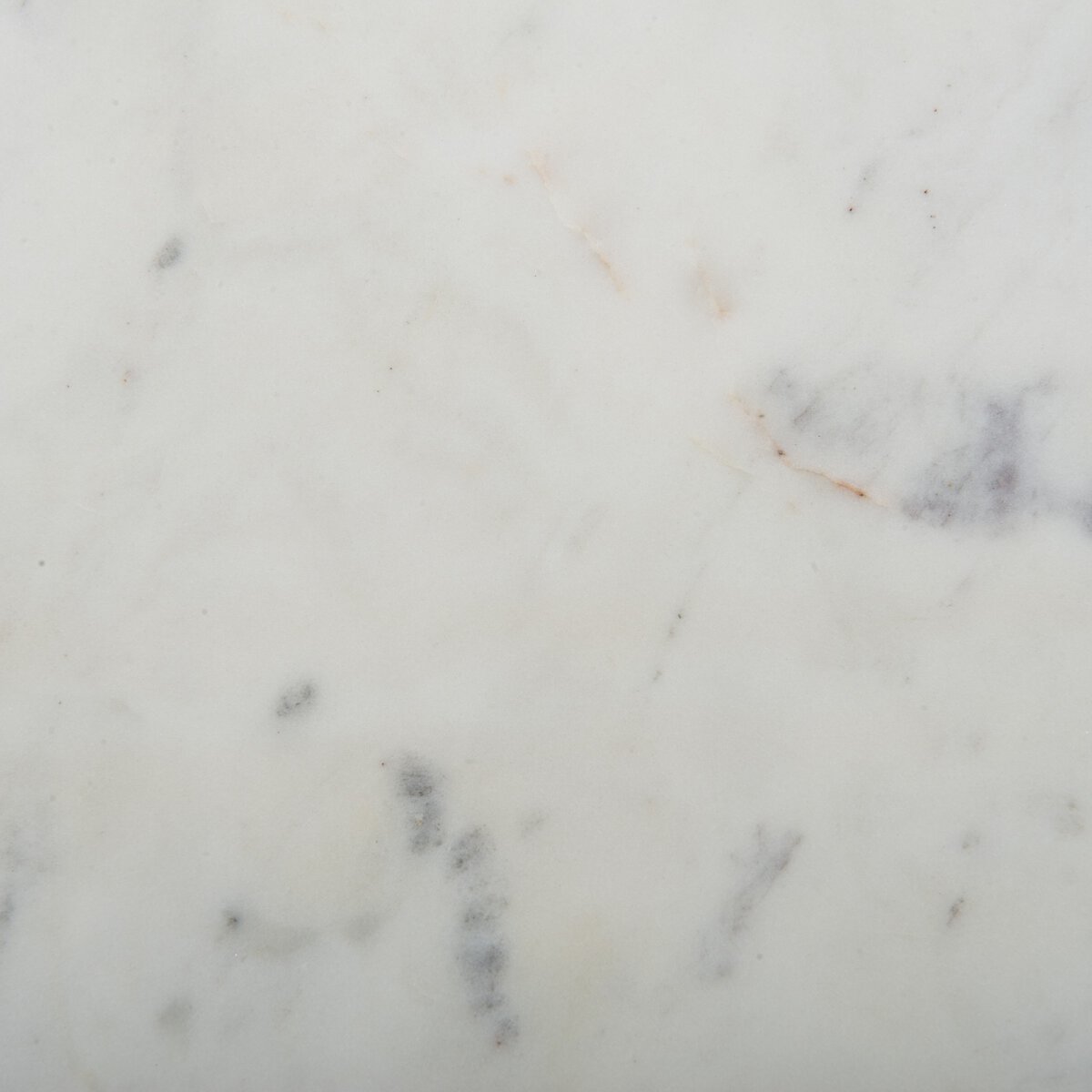 Stacked and structured, slim iron lends edge to the sophistication of polished white marble. Nesting feature for compact functionality and modern, adaptable appeal.