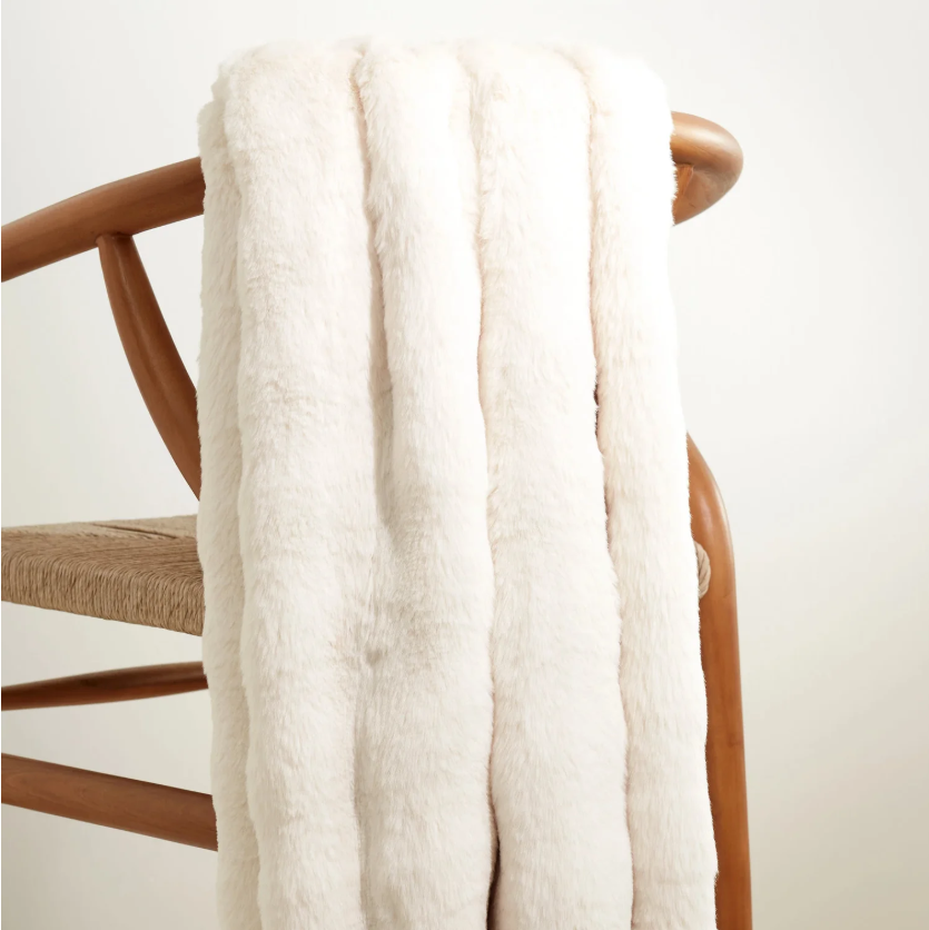 Wrap yourself in exceptional softness with this ultra-dreamy, faux-fur ivory throw. Unbelievably plush and so sumptuous, it’s double-sided and double-layered with a subtle, undulating texture. The perfect combination of style and coziness, it’s simply stunning when draped just-so over a chair, bed, or sofa.