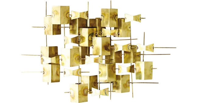 Layer this brass sculpture into your gallery wall for a burst of metallic glam, or let it stand alone to spotlight its artistic and sculptural design. Hangs on two keyholes to hang in any direction.