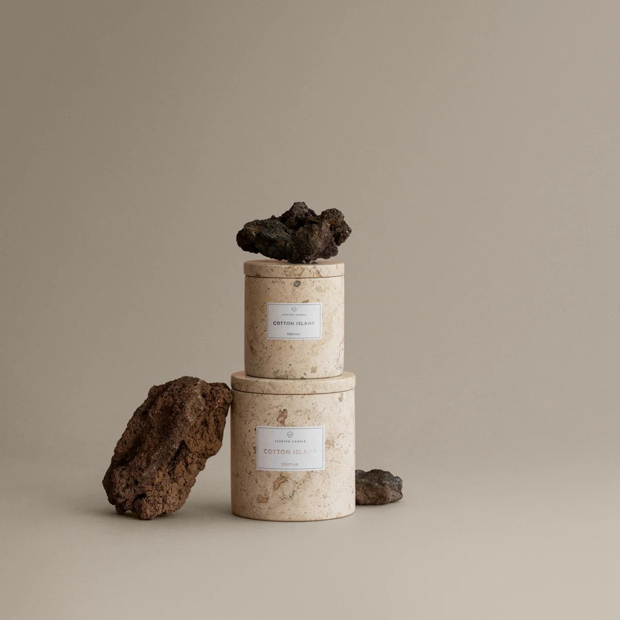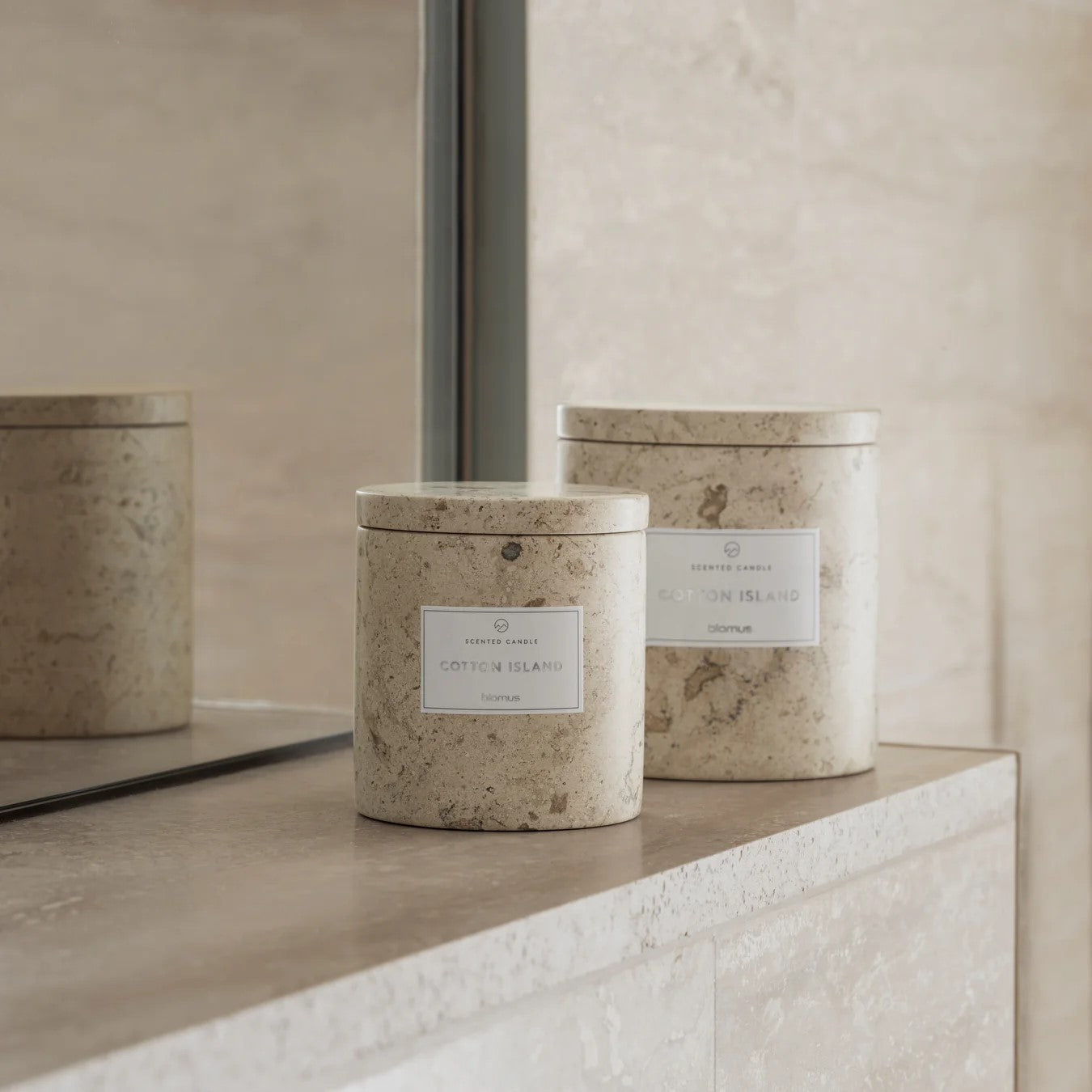 The FRABLI Scented Candle With Travertine Container is beautiful and beautifully aromatic. The candles feature selected aroma compositions with a discreet and long lasting scent. The soy candle is free of palm-oil and produces a particularly low amount of soot. Candle features cotton island fragrance, the sweet scent of lily of the valley with a squeeze of lemon and a shade of white musk.