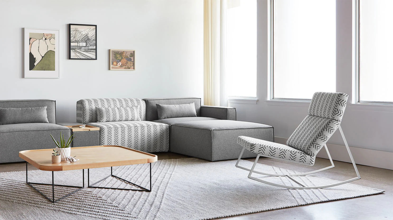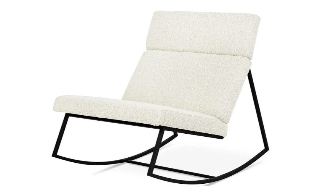 The Gus* version of the perfect modern rocking chair; featuring a powder coated frame with architecturally-styled cushions inspired by airport lounge seating and 70's car interiors. Constructed with 100% FSC®-Certified hardwood in support of responsible forest management.