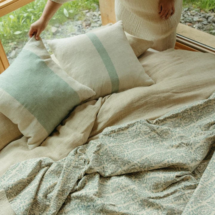 Our Harbor Linen Pillow offers a minimal and understated design with a pop of colour. It is handwoven from 100% European linen flax, ensuring both durability and elegance. The timeless design is featured on both sides, offering endless styling possibilities for beds, sofas, or accent chairs. Plus, it comes complete with a premium Responsible Down Standard (RDS) certified feather feather/down filler, providing ultimate comfort and fluffiness. Machine Washable
