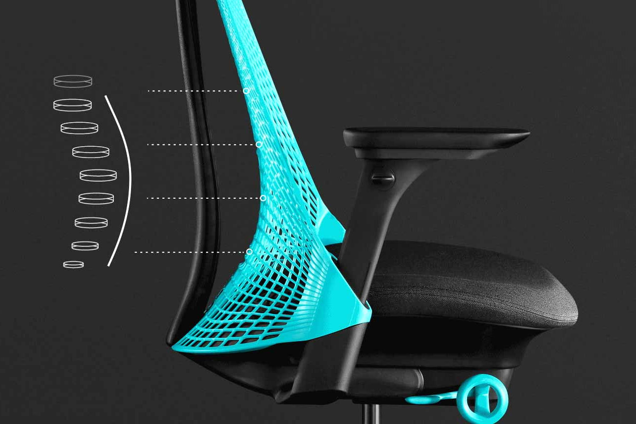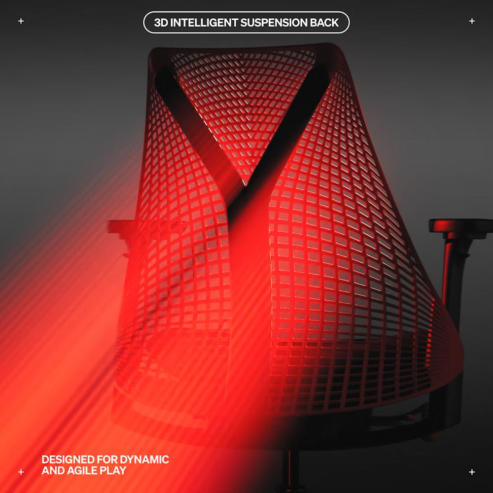 The gaming chair edition of Sayl makes a big impact with a small footprint. Designed with a nod to suspension bridges, Sayl's unframed 3D intelligent suspension back features dynamic elastomer strands that flex with your micro-movements for agile play. You can even lean into the game without losing back support with Sayl's unique forward tilt. Plus, Sayl contains no PVCs and is up to 94% recyclable at the end of its long life. Game on!