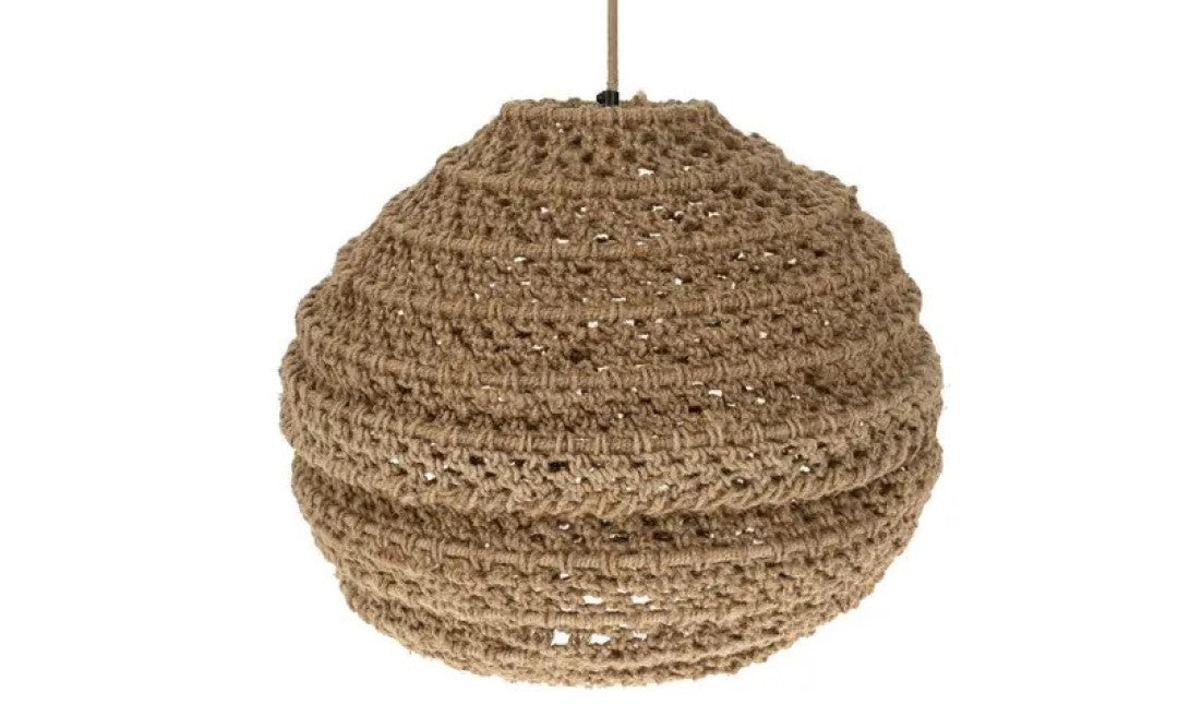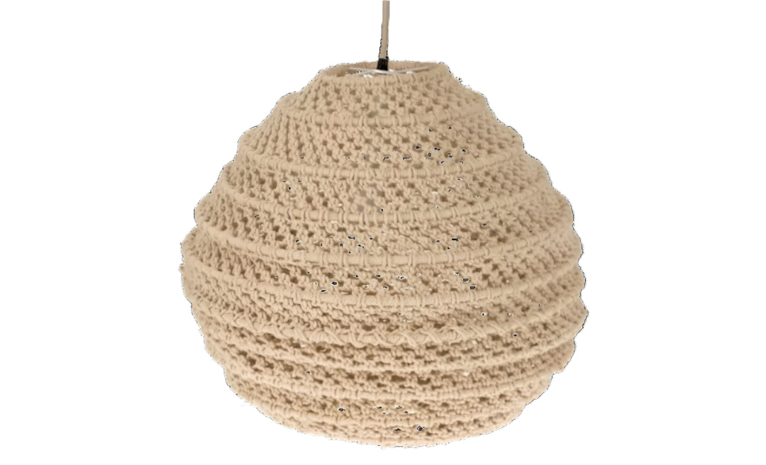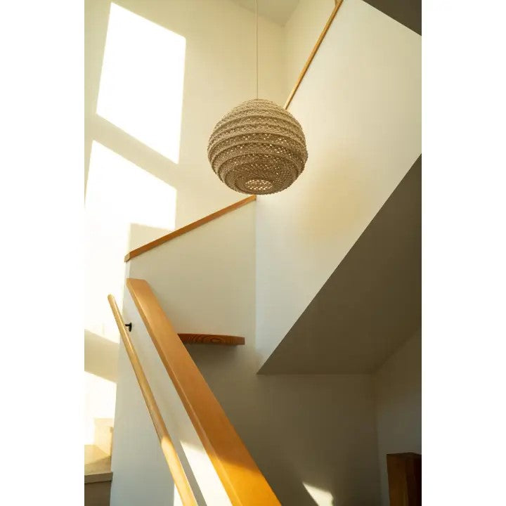 The Hive Pendant is hand knotted to create a sculptural and intricate light fixture that adds an earthy, organic look to your space. Laid back and airy, this hardwired pendant brings diffuse illumination and comes with a 5” white ceiling plate and a 59” adjustable cloth-wrapped cord in a complementary neutral tone. Features an E26 socket accommodating one bulb up to 9W LED or 40W incandescent.