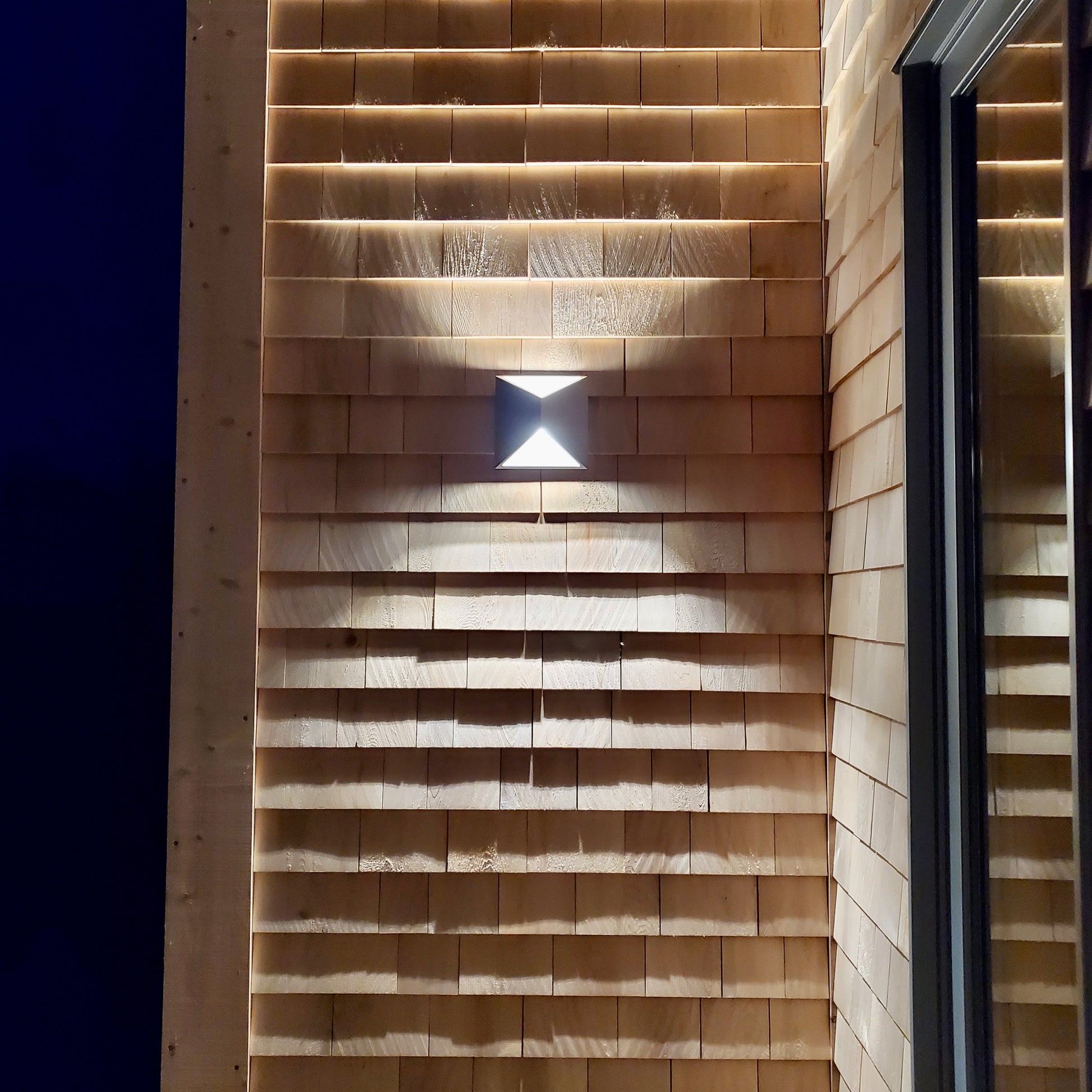 Stunning minimalist aluminum housing wall sconce available in brushed nickel, espresso and white finishes. Square shaped with triangular opening omitting light up and down. Equipped with our powerful 120V AC LED technology.