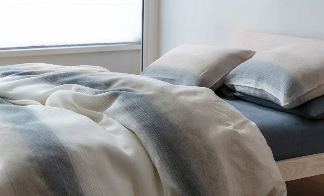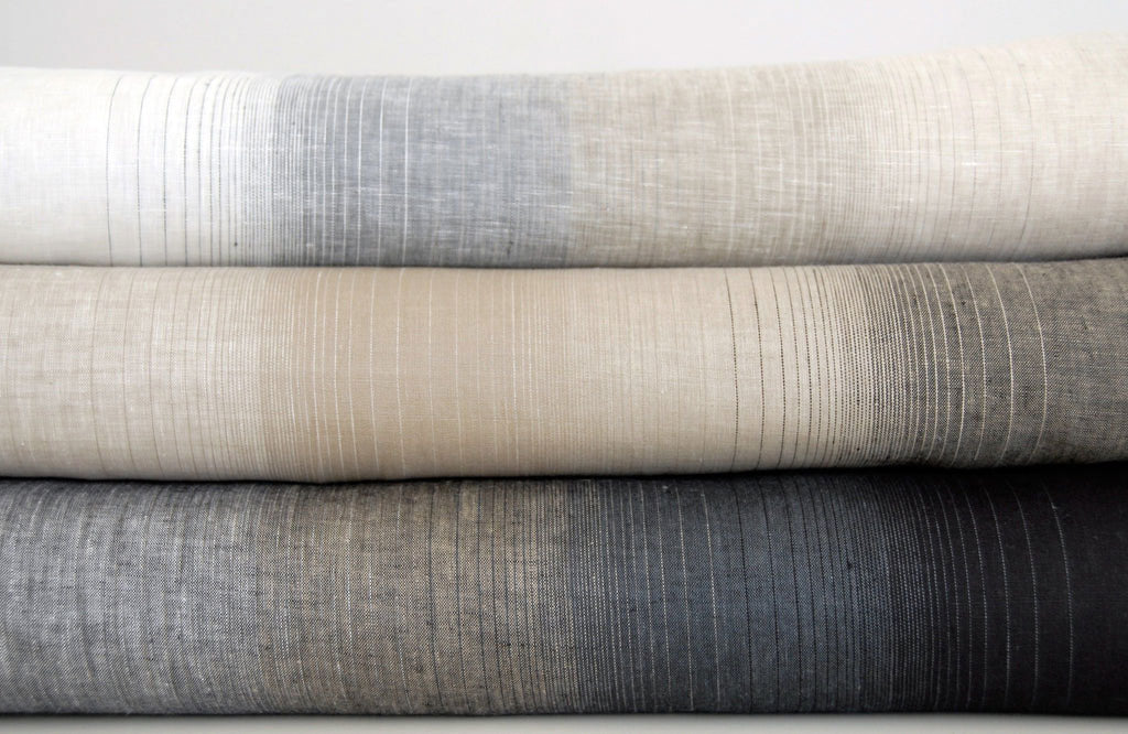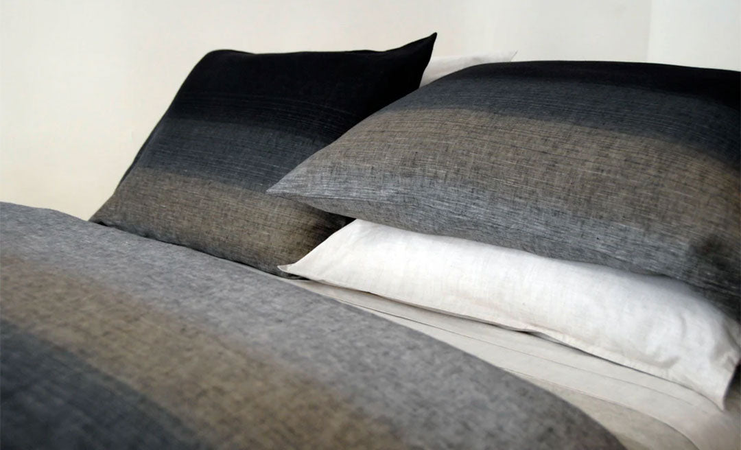 Pure linen duvets in attractive, gradient stripes that seem to float into each other, creating interplaying layers of tone and texture. Duvet features button closure.