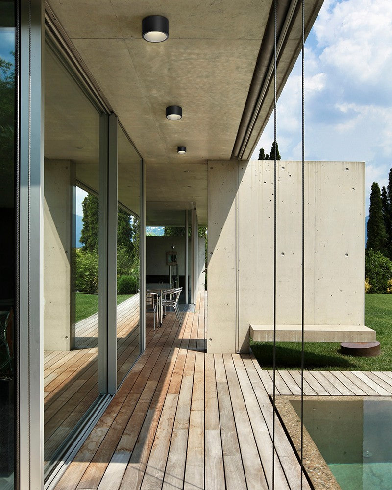 Extruded aluminum cylinders with cast retaining rings and mounts Exterior surface mount or pendant with max. stem length of 46`` Opal circular diffuser Down light
