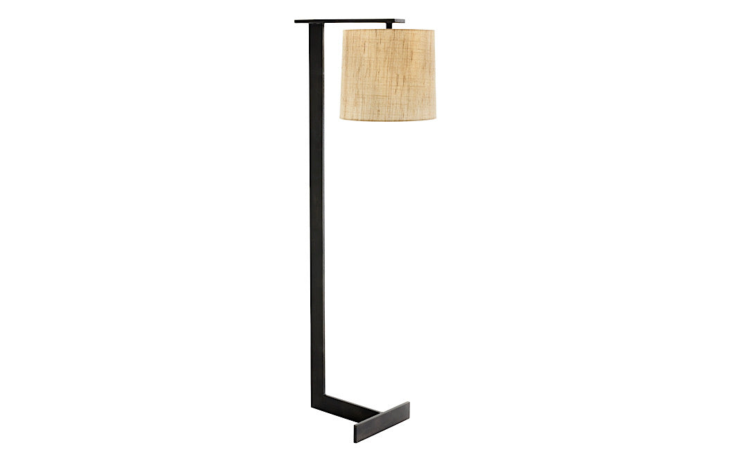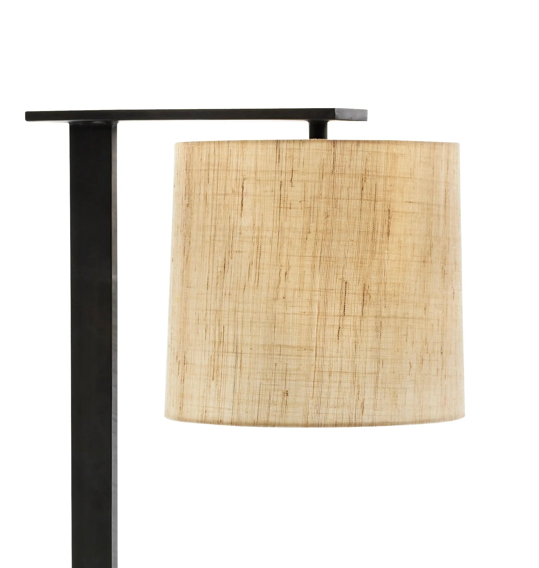 The Livingston makes quite the architectural statement with its bold cantilever-style frame. A beautiful balance of organic and industrial materials, this floor lamp showcases an arching profile, crafted of blackened iron.Β The frame is contrasted by a suspended raw hemp shade, with off-white lining, that softens its silhouette and brings in an earthy element.