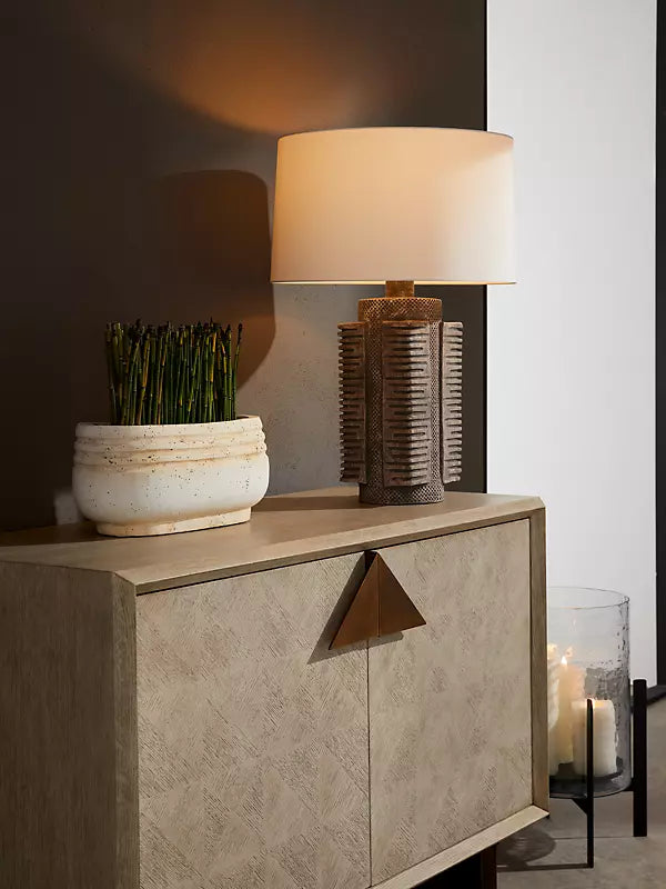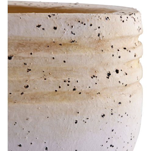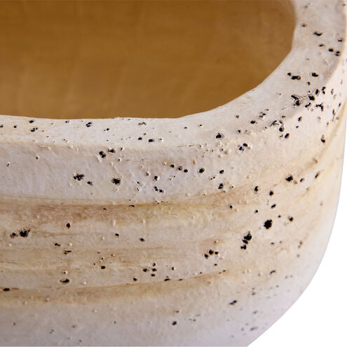Add a touch of warmth and a rustic desert aesthetic with this terracotta pot. This classic silhouette has a delicate upward taper, etched with broad linear carvings reminiscent of past civilizations. Finished in a textural, toasted ivory this pot will blend beautifully with other decor, or as a planter for a small potted plant. Finish will vary.