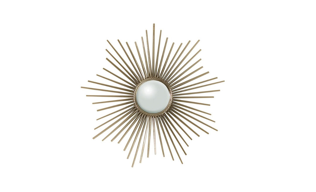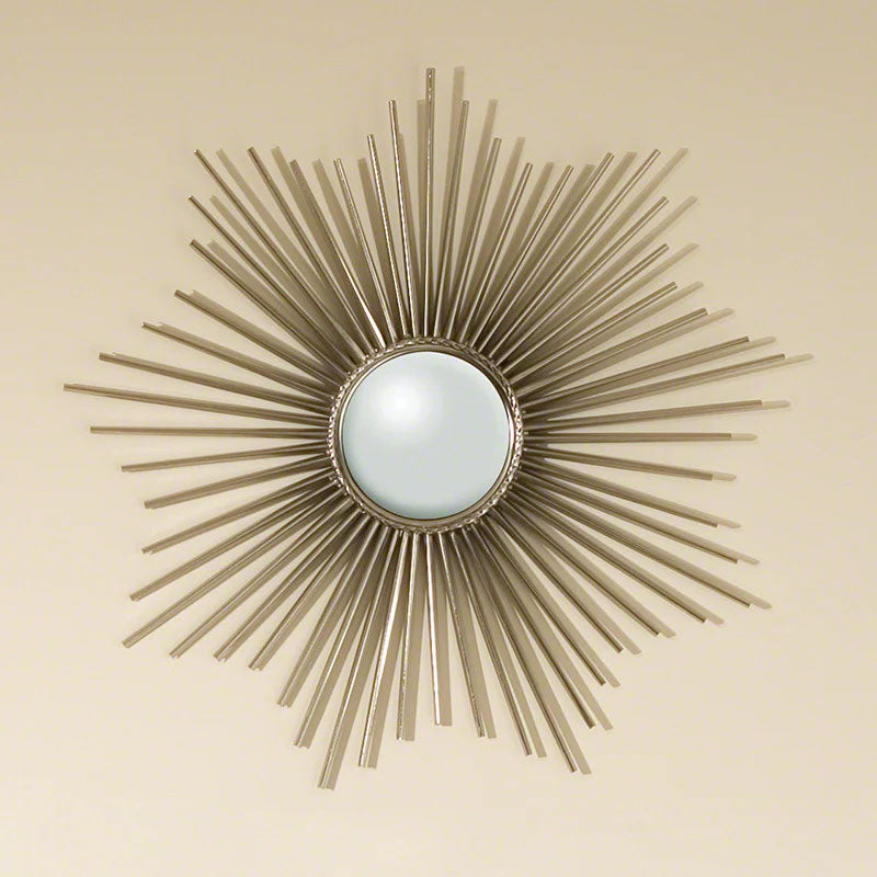 You'll add a sparkle to your decor with this captivating Mini Nickel Sunburst Mirror. Metal rays extend out from a round center convex mirror. This stunning nickel finished piece gives your walls personality and shine.