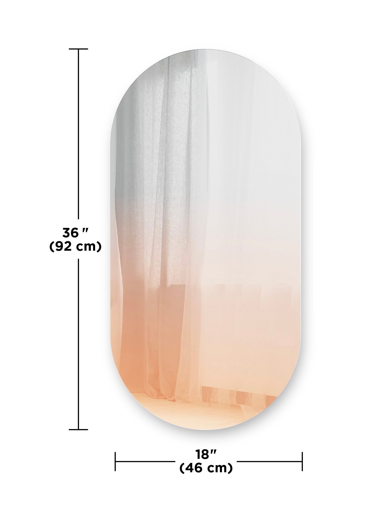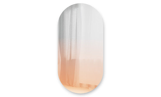 Misto Mirror features a soft gradient, adding a touch of color to your space. Misto's slim oval shape incorporates a decorative touch to your walls. With rounded curves, Misto instantly softens any space and doubles as an art piece on your wall.