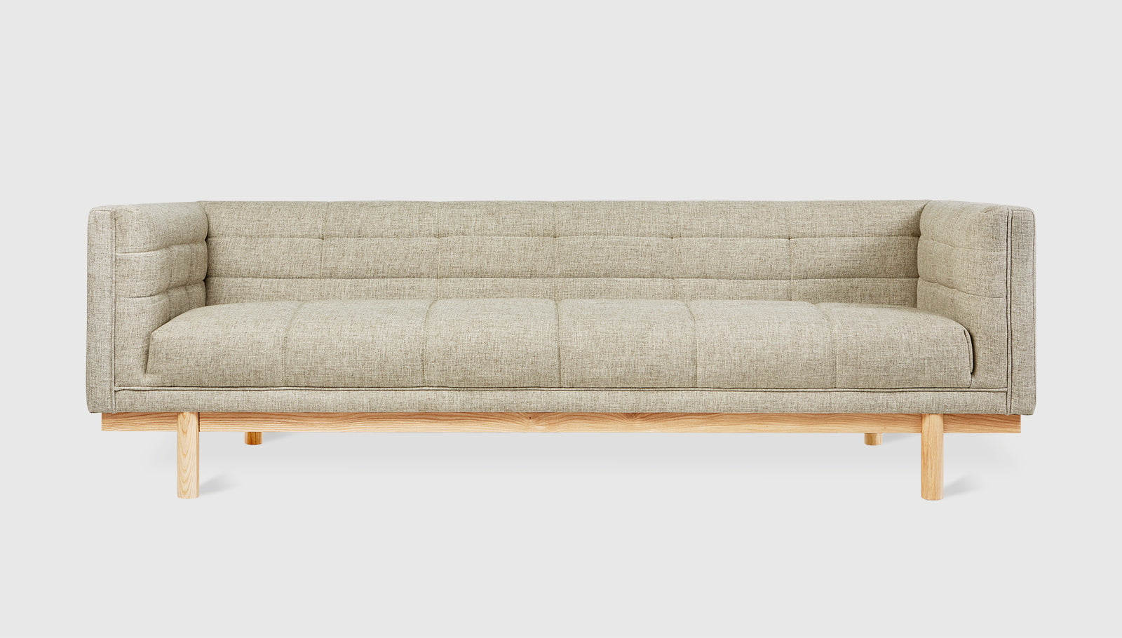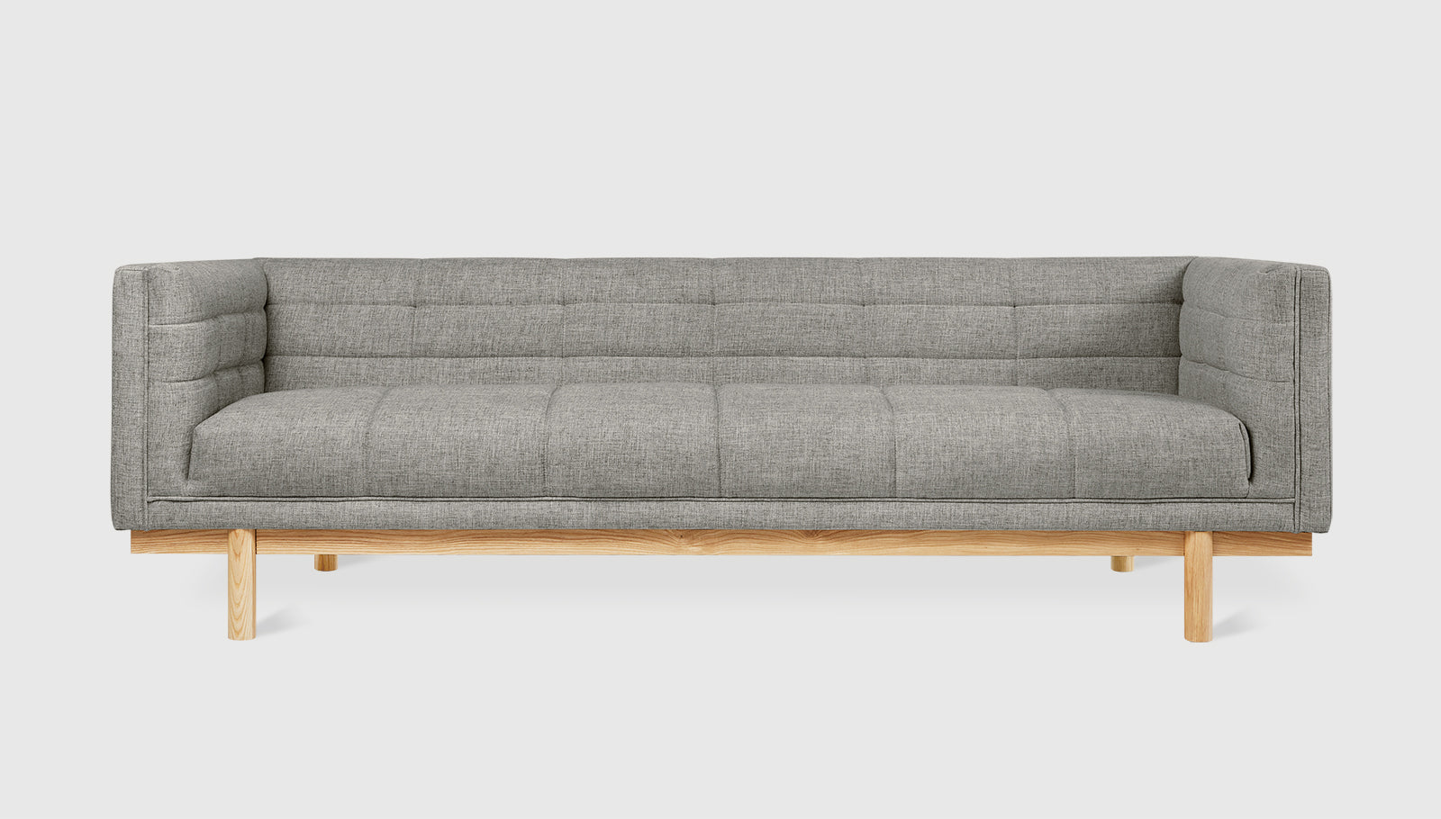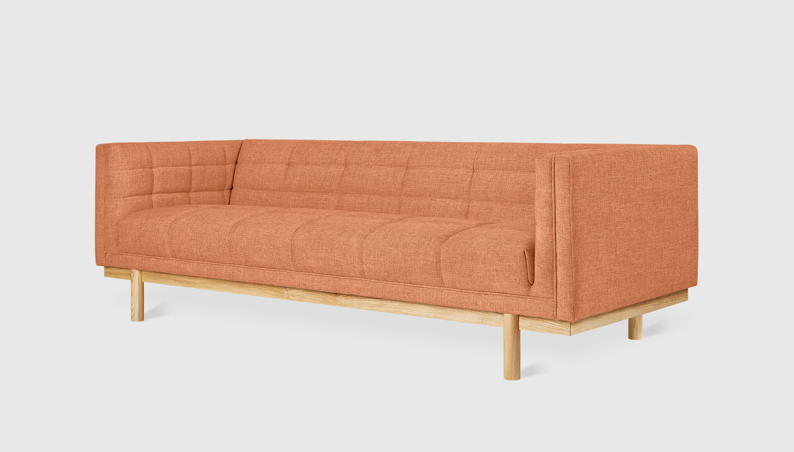 Drawing inspiration from both mid‐century and contemporary influences, the Mulholland Sofa is a tailored design with distinctive tufting on the seat, arms and back that creates subtle character and an attractive, modern aesthetic. With no cushions to adjust, the tuxedo‐style frame creates an enveloping space where everything stays in place and looks beautiful day after day. An eco‐friendly, solid wood perimeter base with notched‐dowel leg details softens the overall look and adds warmth to the design. All wood inside and out is FSC®‐certified in support of responsible forest management. Part of the Mulholland Series, the Sofa matches perfectly with the Mulholland Chair, Lounge and Bi‐Sectional.