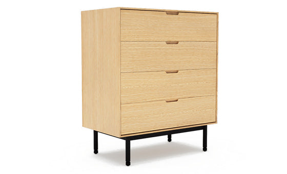 We envisioned our new Munro Collection for those who like to keep things simple. Considered proportions along with bespoke details like soft‐close drawers and recessed pulls lend to designs that shine – day or night. The Munro 4‐Drawer Dresser features plenty of storage space to keep your garments neatly tucked away, creating an organized, uncluttered bedroom retreat. Choose from Walnut or Oak, each with a Zero‐VOC, hand‐rubbed matte finish, thoughtfully chosen to highlight the unique, organic beauty of the wood grain. Solid wood edge details and solid steel legs mean that these designs are built to last – a good thing because Munro’s classic, minimalist ethos will never go out of style.