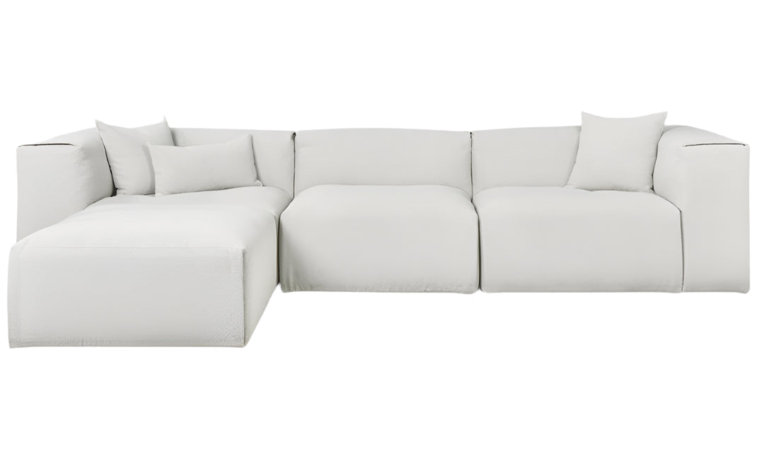 With plush comfort and a sophisticated, structured shape, our innovative Nest Modular Series invites you to sink in and stay awhile. The epitome of easy luxury, this versatile collection features five core components (Left Arm, Right Arm, Corner, Armless, and Ottoman) that offer near-endless configurations, allowing you to tailor your lounging experience to your evolving lifestyle. Each piece touts a plump low profile (courtesy of premium feather fill) encased in nubby bouclé fabric, with a Scandinavian-inspired modern shape that is versatile enough to hold court in a beach house, mountain escape, or boutique hotel lobby.