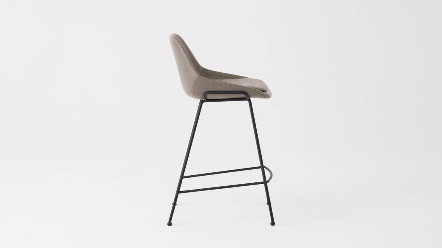 The Nixon bar & counter stools feature a padded shell, curved to provide comfort and support. the stools also include a removable seat cushion. with a neutral colour palette and black-metal base, nixon stools are suited for the counter or bar and pair well with the Kendall 54” table. these stools are available in a dark grey or light beige fabric, and in a grey or brown synthetic leather.