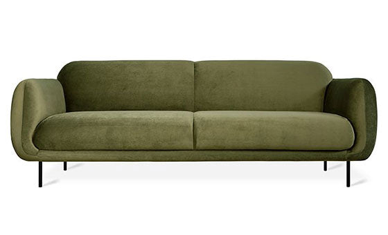 Envelop yourself in mod luxury with the plush and sophisticated Nord Sofa. With an elegant, curved silhouette, the Nord Sofa invites you to sink in and stay awhile, with a retro yet timeless shape thatβs emphasized by an ample, low profile back and feminine curved arms. Each piece has been expertly crafted in lush fabric, with a tight seat and back atop black steel legs that add a modern touch to the pieceβs striking β70s-inspired sensibilities.