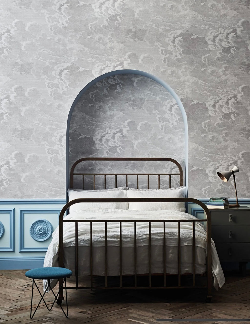 A smaller scale version of the mural Nuvole,ย Nuvolette is one of the most enduring Fornasetti designs. The sky was long a recurring vision for Fornasetti and these "little clouds" are delicately detailed etchings depicting tempestuous, rolling skies. Presented in understated colourways creating endless movement across this enchanting design.