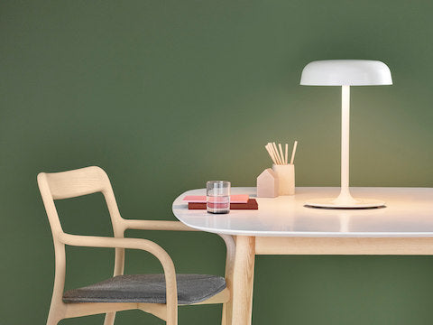 Our instinctive attraction to light inspired designers Sam Hecht and Kim Colin of Industrial Facility to create Ode Lamps. The diffused LED and spun-steel shade of the Ode Desk Lamp creates an inviting pool of illumination, drawing people together to engage one another in meaningful ways at home or in the workplace.