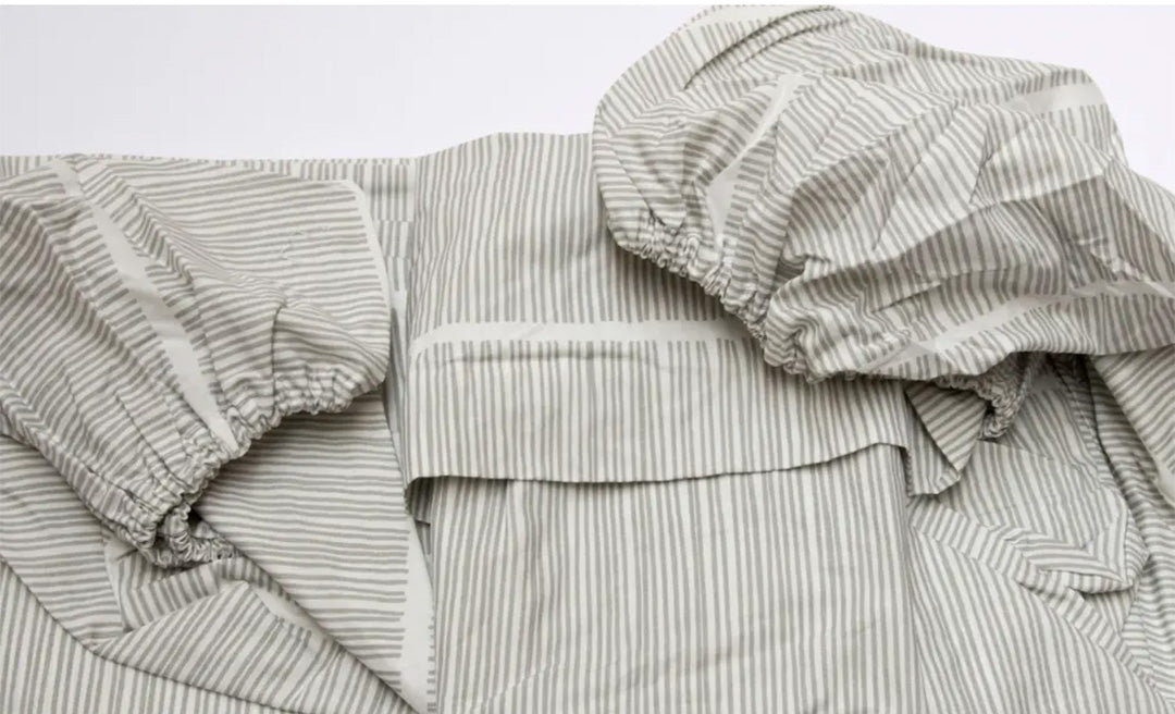 An Area classic, Pins is a printed cotton percale that is smooth, crisp and cool to sleep in. Purposefully light, loose variations in line and spacing yield a calming motif airily reminiscent of bamboo weaves.