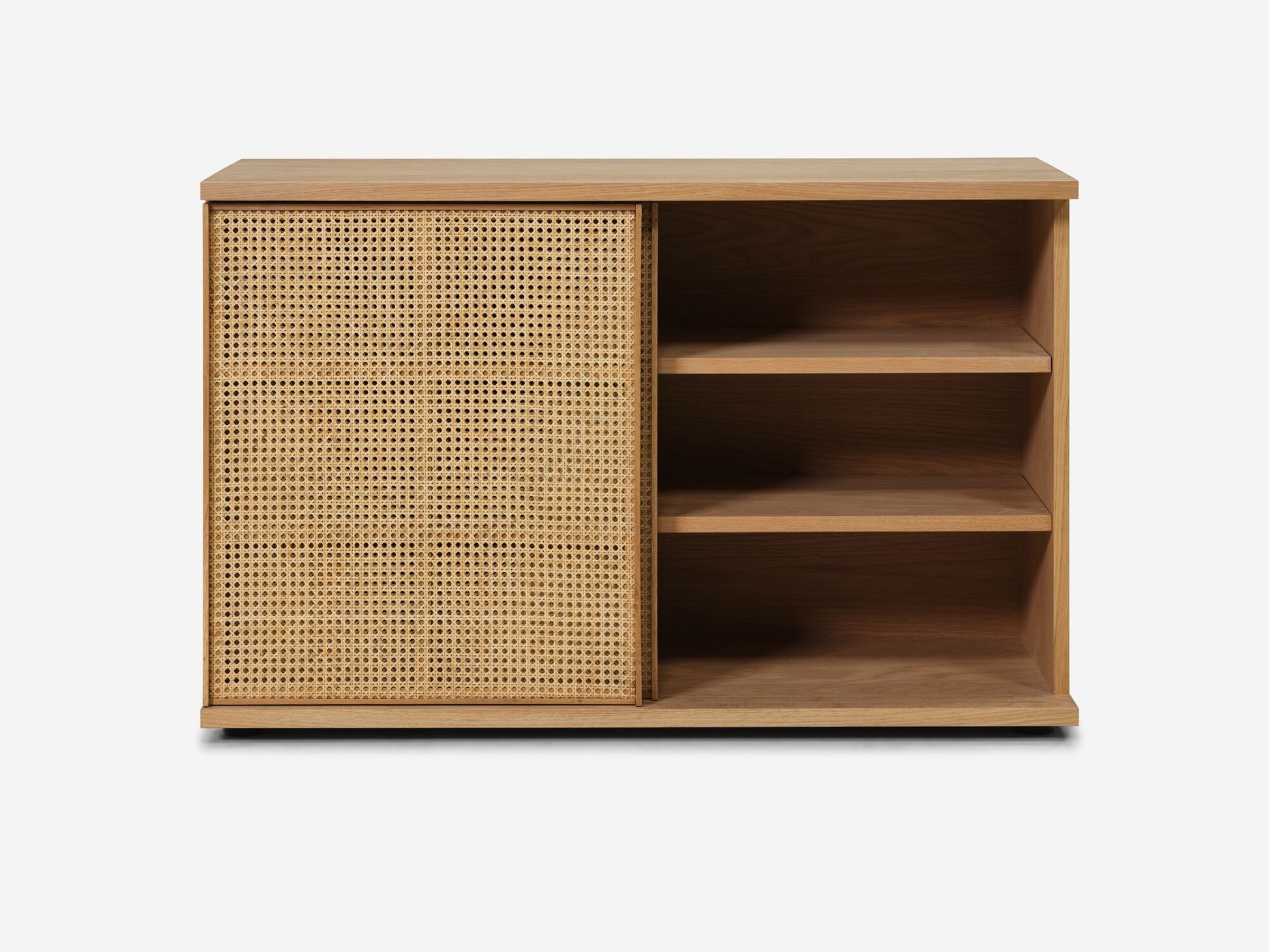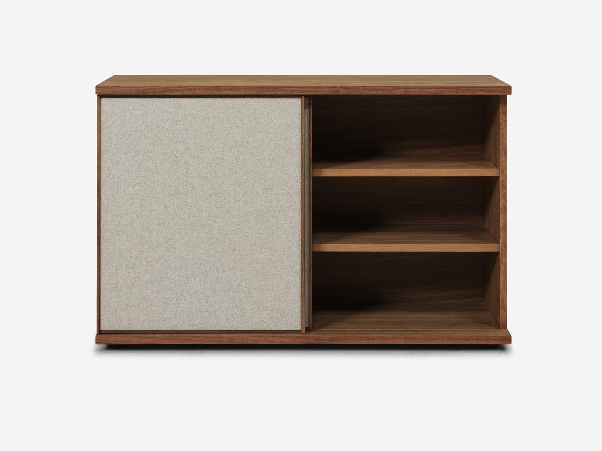 Designed by Tom Chung, the Plank Sideboard offers a visually lightweight and well-proportioned storage piece for the office and home. Inherently multi-functional, Plank is finished on all sides for versatile layout options. Office sideboard features adjustable shelves and 2 sliding doors for closed storage