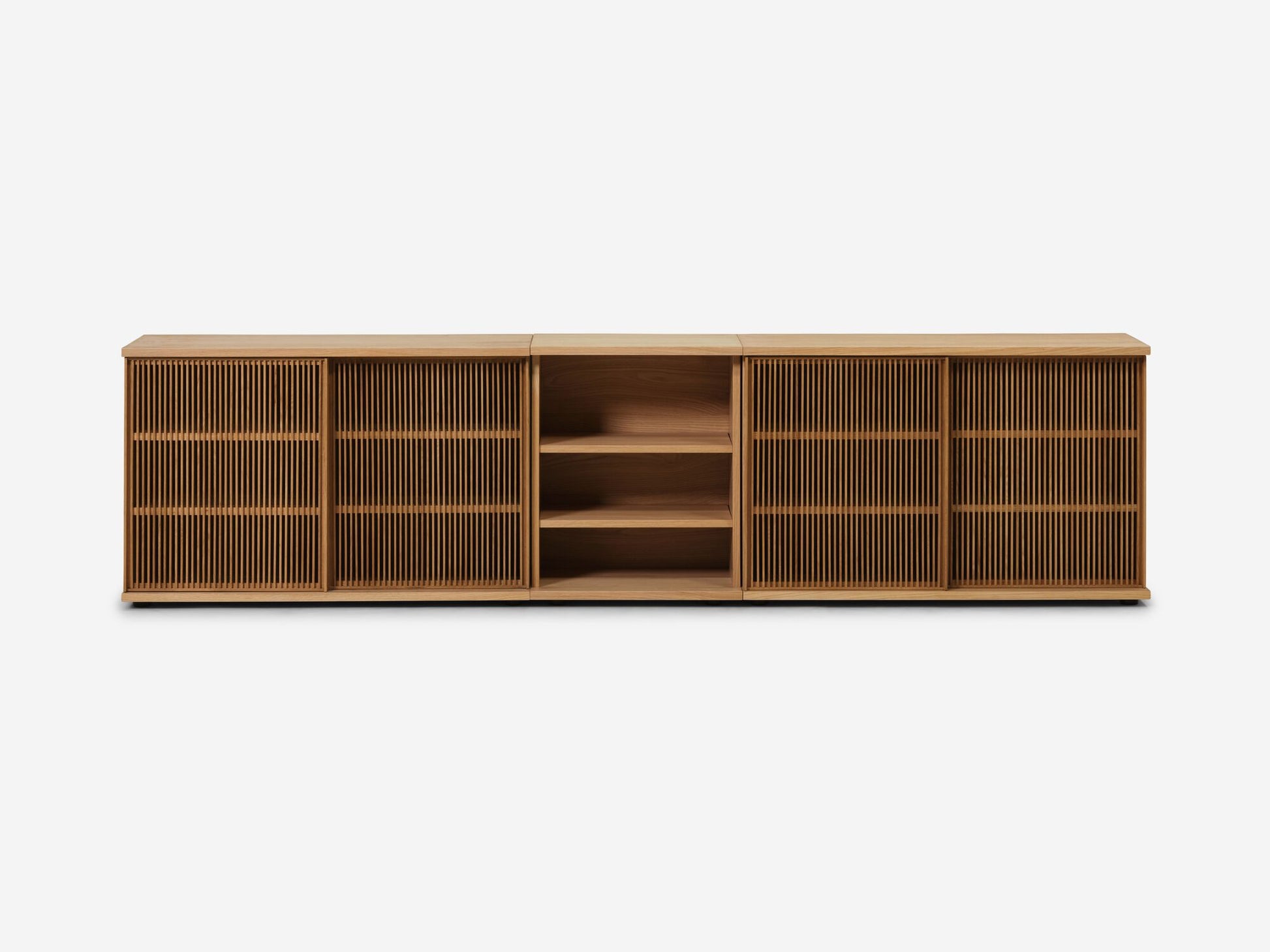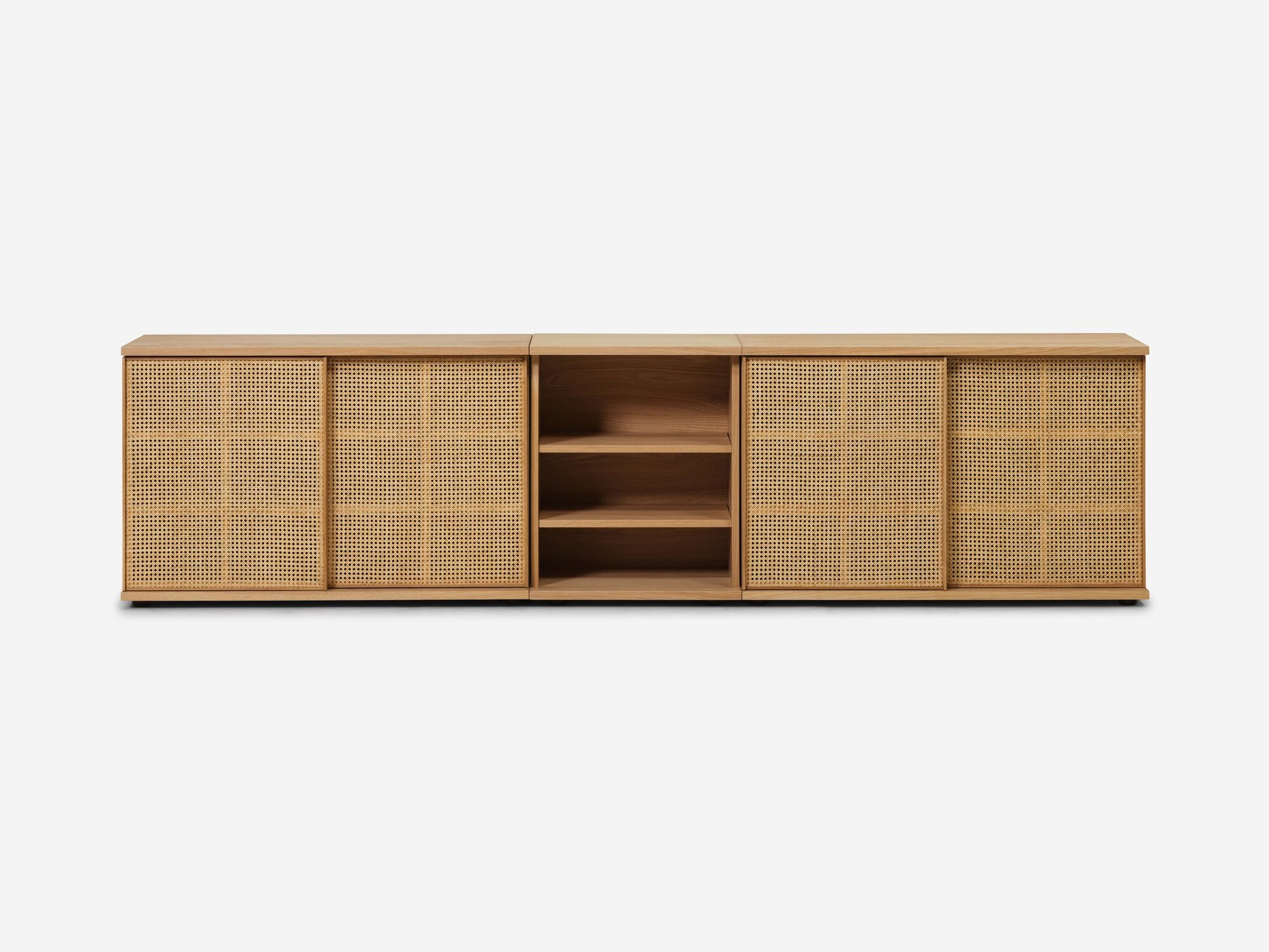 Extra Wide sideboards come in a 3 piece set (2 Standard Shelves + an additional Open Shelf), can be moved around to suit your space