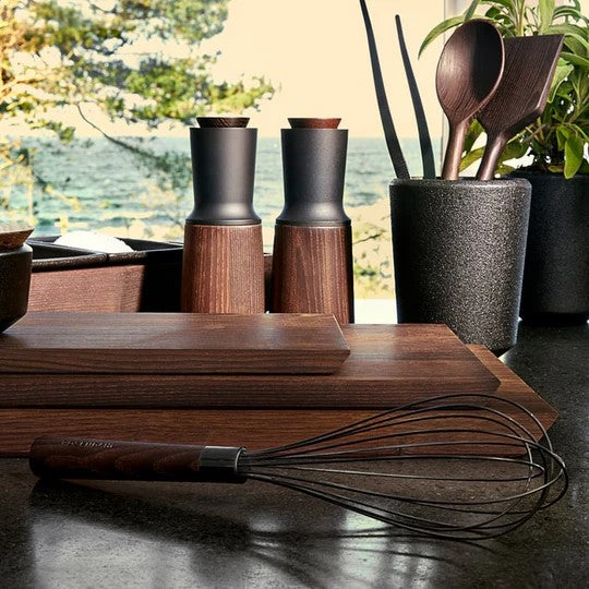 The kitchen series RÅ is designed in collaboration with chef Jesper Vollmer. Based on many years of experience as a professional chef with braising, touring and seasoning, he has designed a range of user-friendly products with a great grip and a perfect weight and balance for your table and kitchen. Made of tough, practical, heat-treated ash, this RÅ ladle, with its large head, is also suitable for serving.