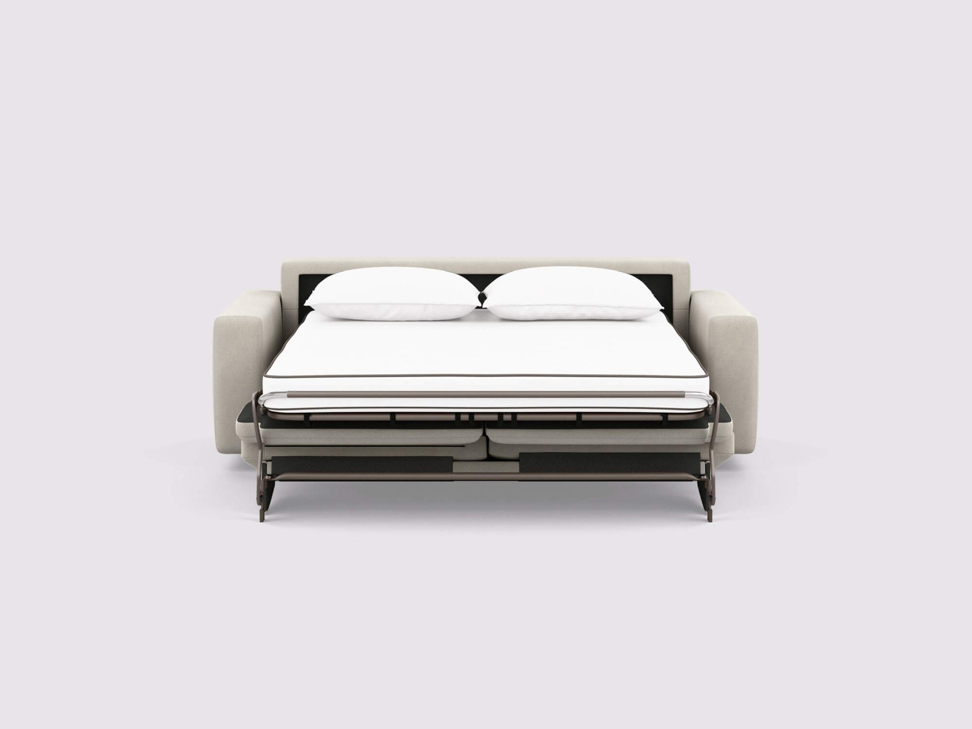 An inviting sofa in its own right, the Reva sofa sleeper quickly and seamlessly converts to a bed without the need for removing cushions when hosting guests or an impromptu slumber party arises. With soft lines from the memory foam seat cushion layer, feather-filled back cushions, and high-density, high-resiliency memory-foam-topped mattress, the Reva will have your head in the clouds in no time.