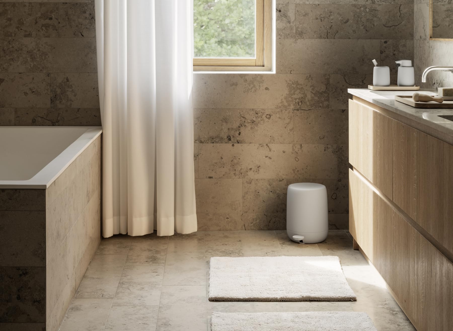 The Pedal Bin is just one element of the popular blomus Sono bath line which features gentle shapes, perfectly rounded edges and a soft surface with an exquisite silk matte finish.