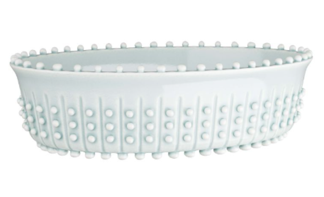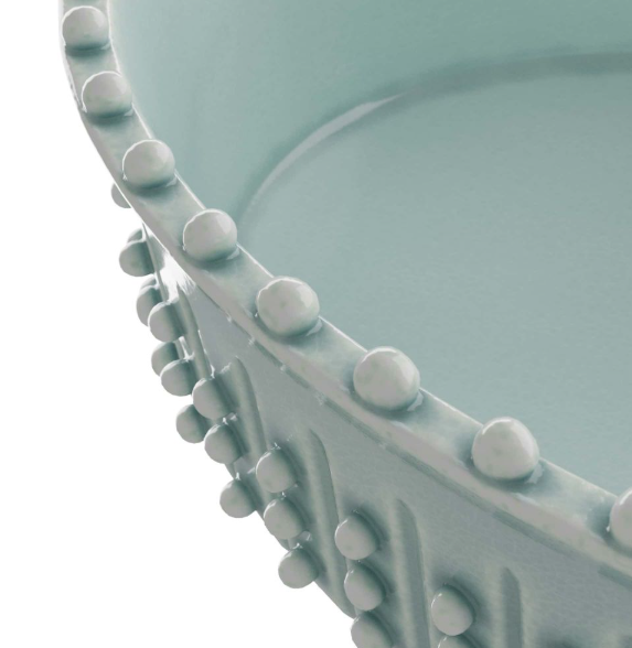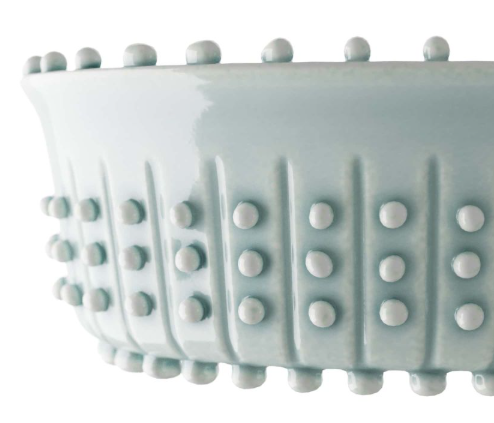 A ceramic centerpiece in a celadon finish, doused in soft hand-applied beads for a unique design. Finish will vary.